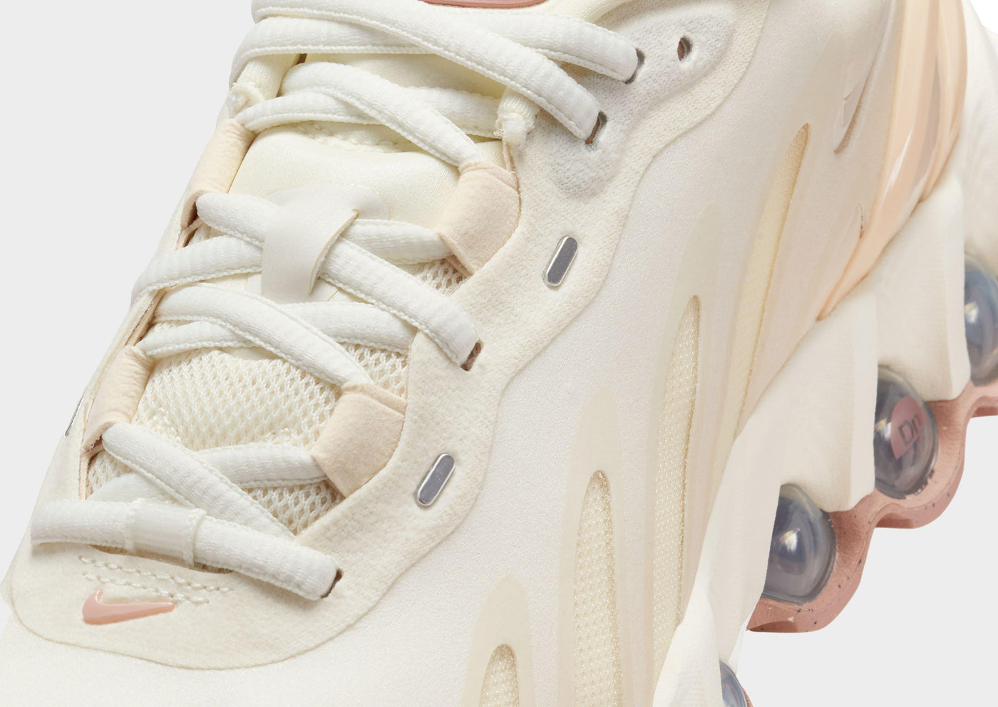 More Air means more comfort. These women's Air Max Dn8 trainers from Nike are designed with that in mind. In a Pearl White and Particle Pink colourway, these sneakers pack a Dynamic Air system underfoot, which powers each step with eight Air tubes. The mesh upper keeps things cool, while a plastic heel clip locks you in. Finished with Air Max branding and a subtle Swoosh logo to the sidewalls.