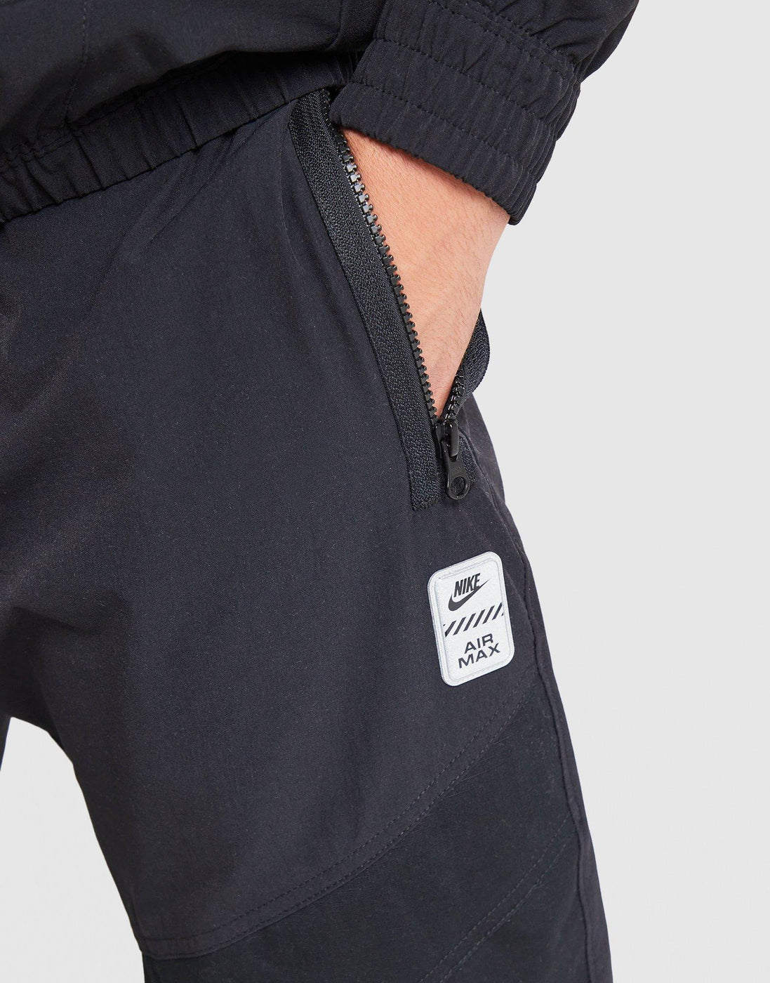 Storage? You've got plenty. These men's Air Max Woven Cargo Pants hold all the essentials when you're on the move. Sweat-wicking, lightweight fabric has stretchy ripstop panels for added durability. The elastic waistband and cuffs have adjustable ties for a custom fit. Exclusive to JD, they're finished with a Nike Air Max badge. Machine washable. | Our model is 6'0 and wears a size M.