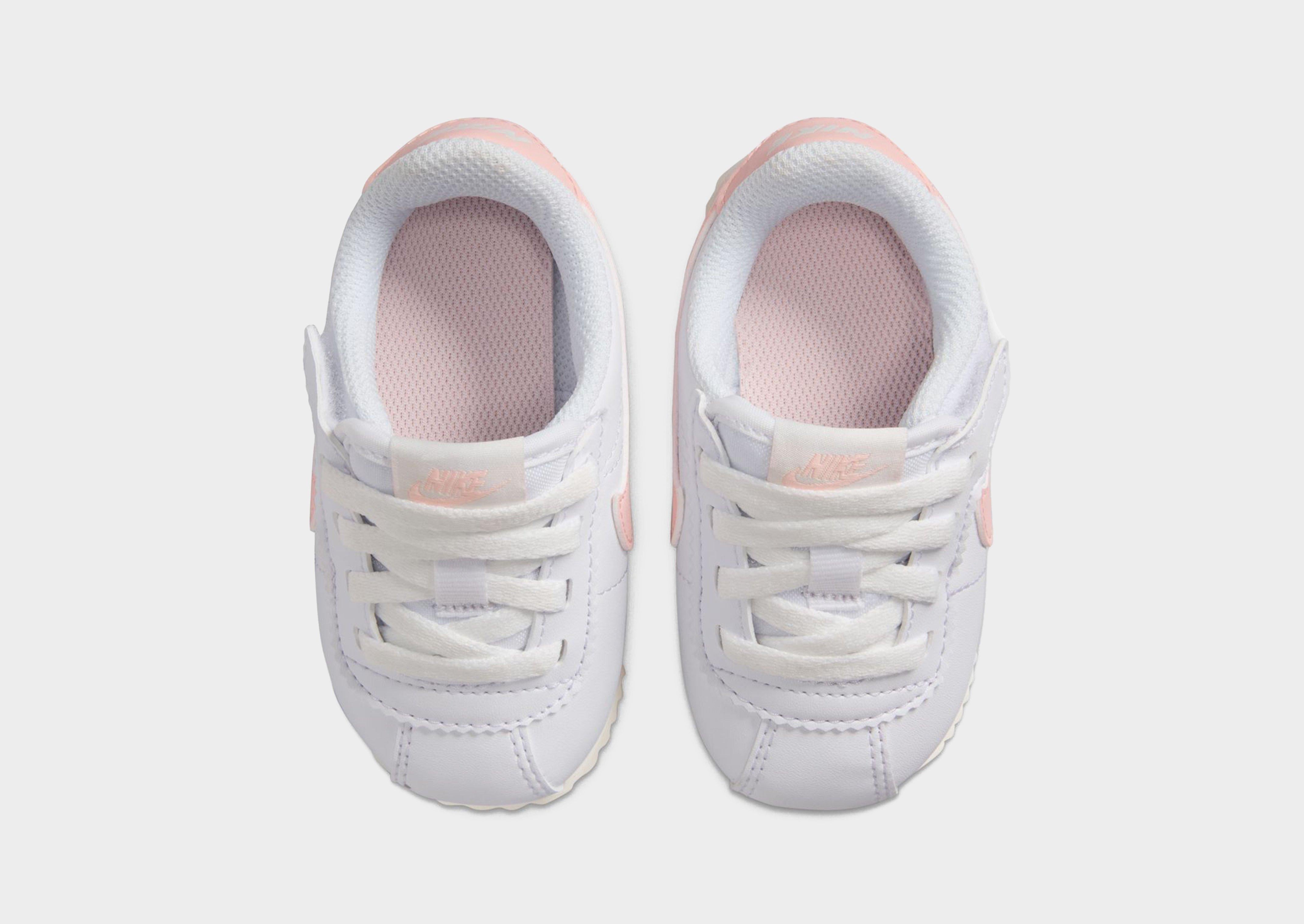 The Nike Cortez EasyOn brings timeless style and effortless comfort to little ones. Featuring a crisp white design with soft pink accents on the signature Swoosh, this baby version of the classic Cortez is as cute as it is practical.