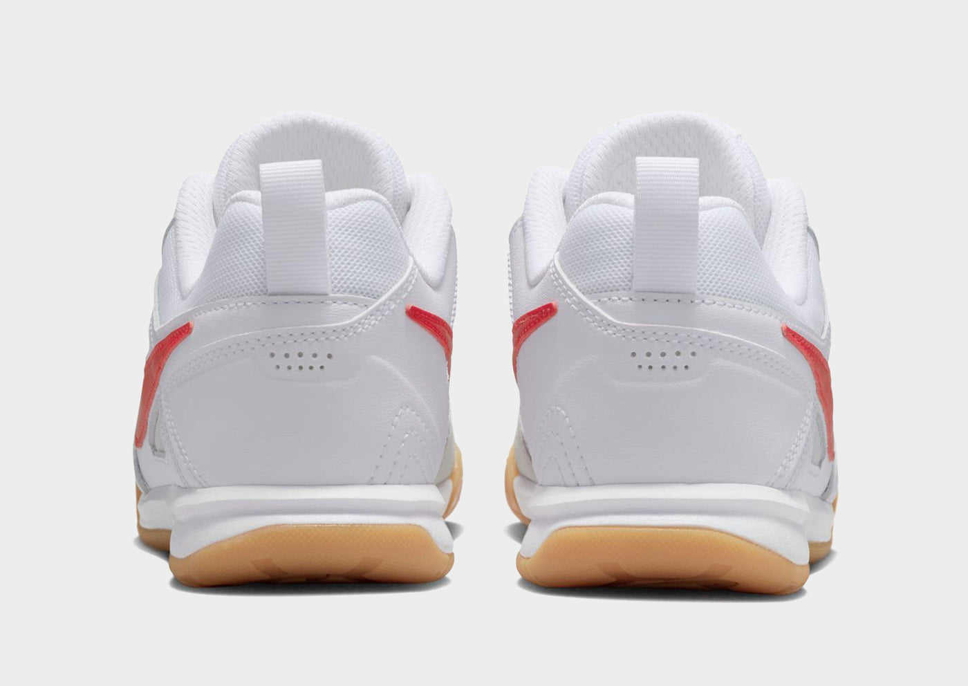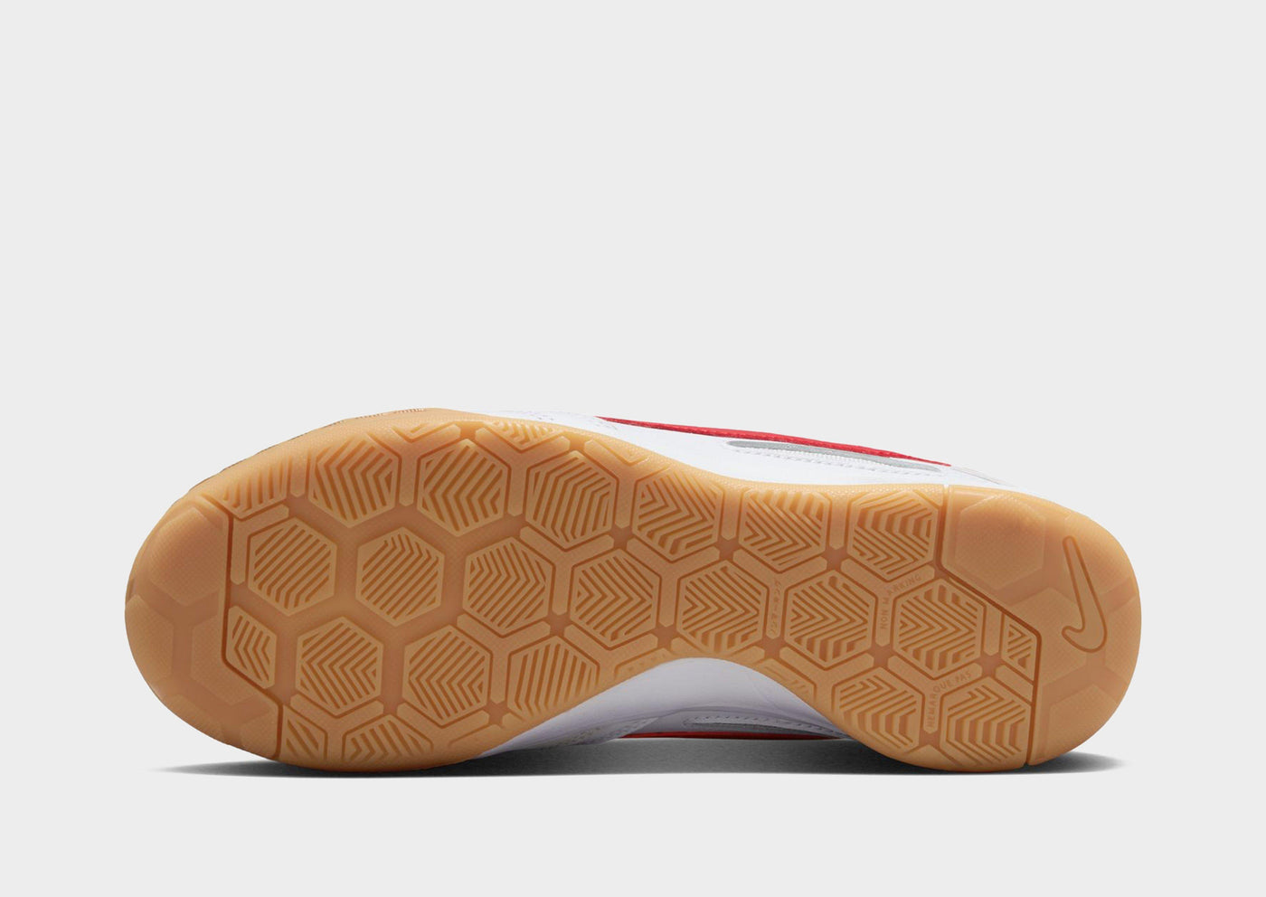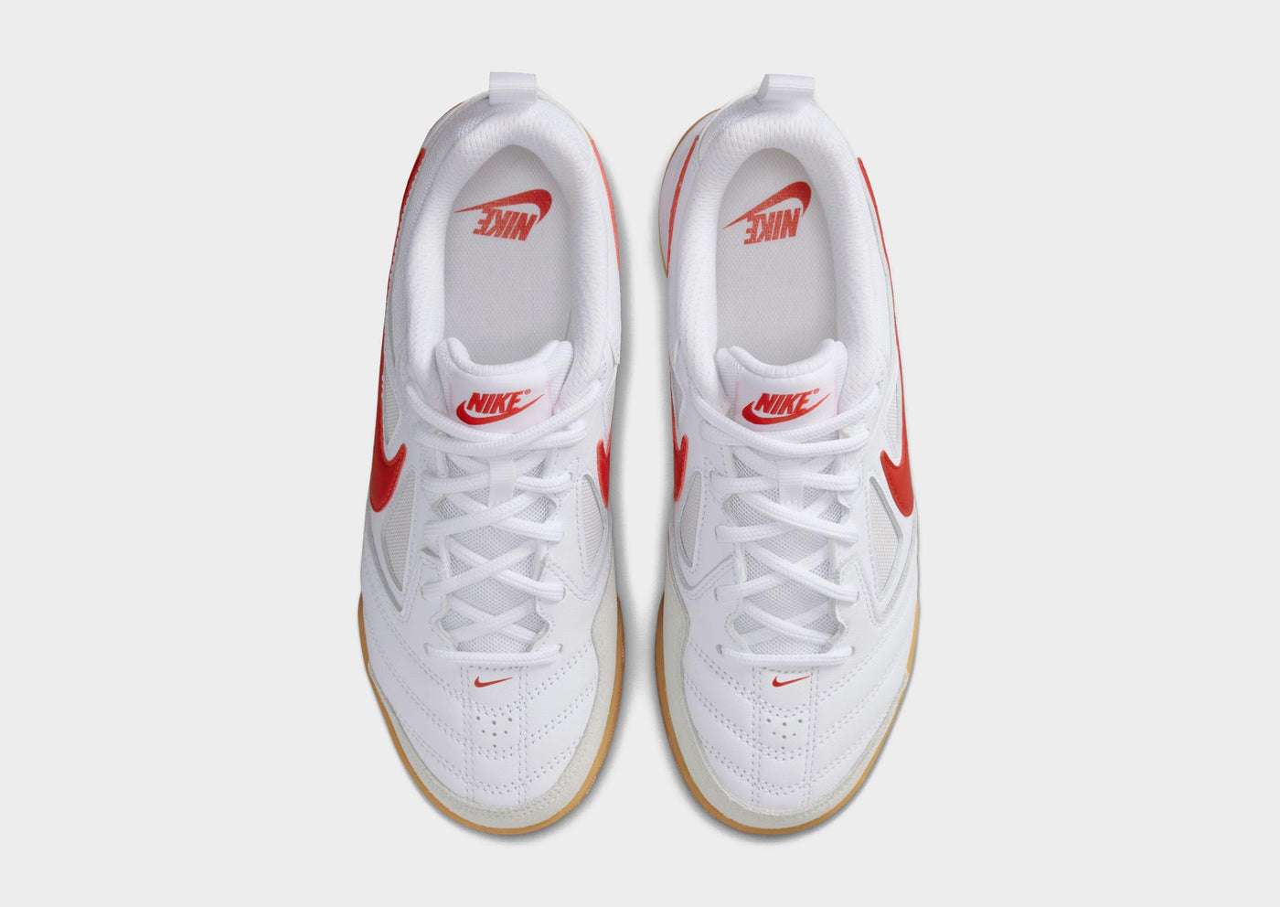 The Nike Gato BG in White/Red-Yellow is a retro indoor football shoe reimagined for streetwear and casual use. Originally designed for futsal, it features a premium leather and suede upper with mesh panels for breathability and durability. The low-profile design offers excellent touch and close-to-ground feel, while the gum rubber outsole with hexagonal traction patterns ensures grip on indoor and hard surfaces. Lightweight cushioning in the midsole adds comfort for all-day wear. Known for its snug fit and classic indoor styling, this colorway blends crisp white with bold red and yellow accents for a clean, sporty look.