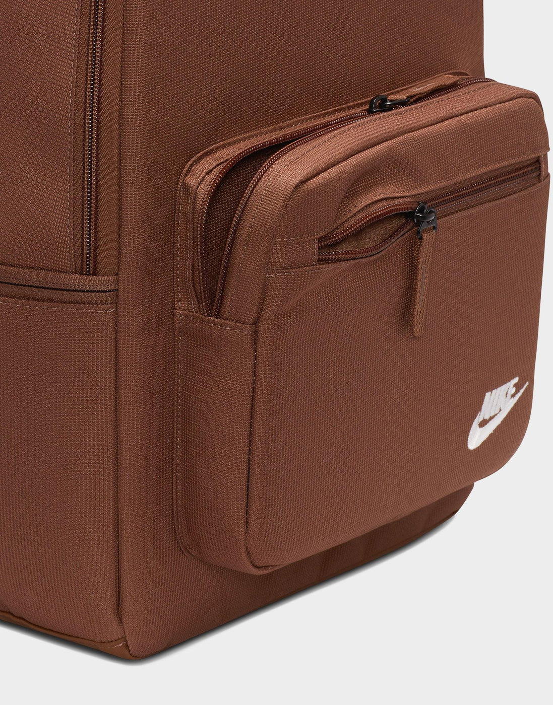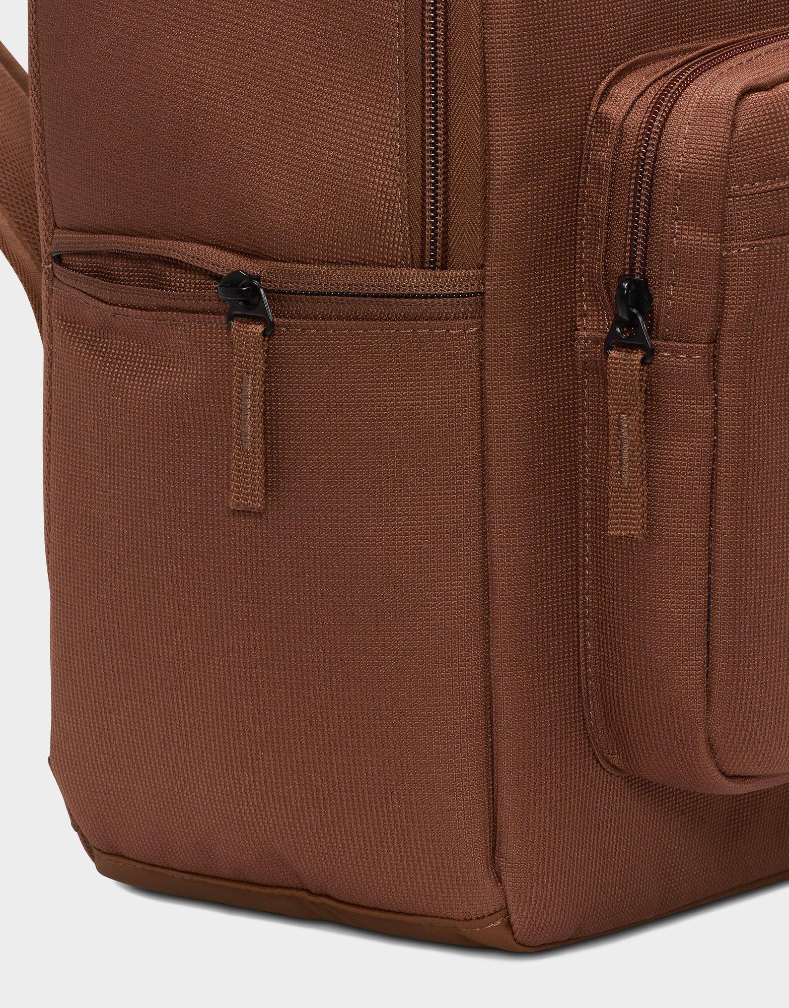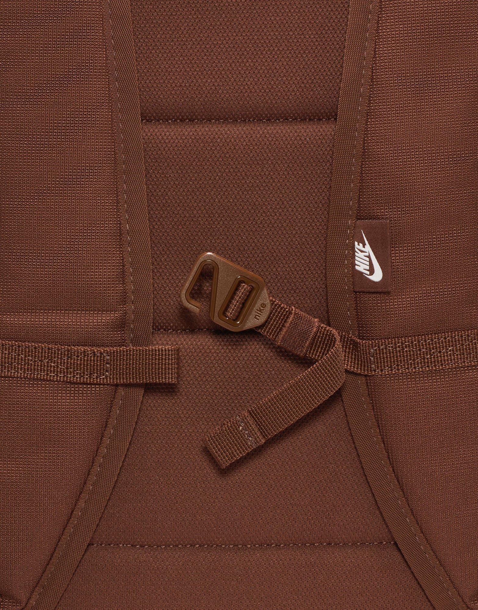 Take your essentials anywhere with the Nike Heritage Eugene Backpack. Built from durable, densely woven polyester with a water-resistant coating, it keeps your gear protected rain or shine. The 23L main compartment offers plenty of space for everyday must-haves, while an internal padded sleeve fits laptops up to 15 inches. A front zip pocket and side compartment keep smaller items organized and easy to reach. Finished with padded shoulder straps and a haul loop for comfortable carrying, this Brown/White backpack blends classic Nike style with everyday function.
