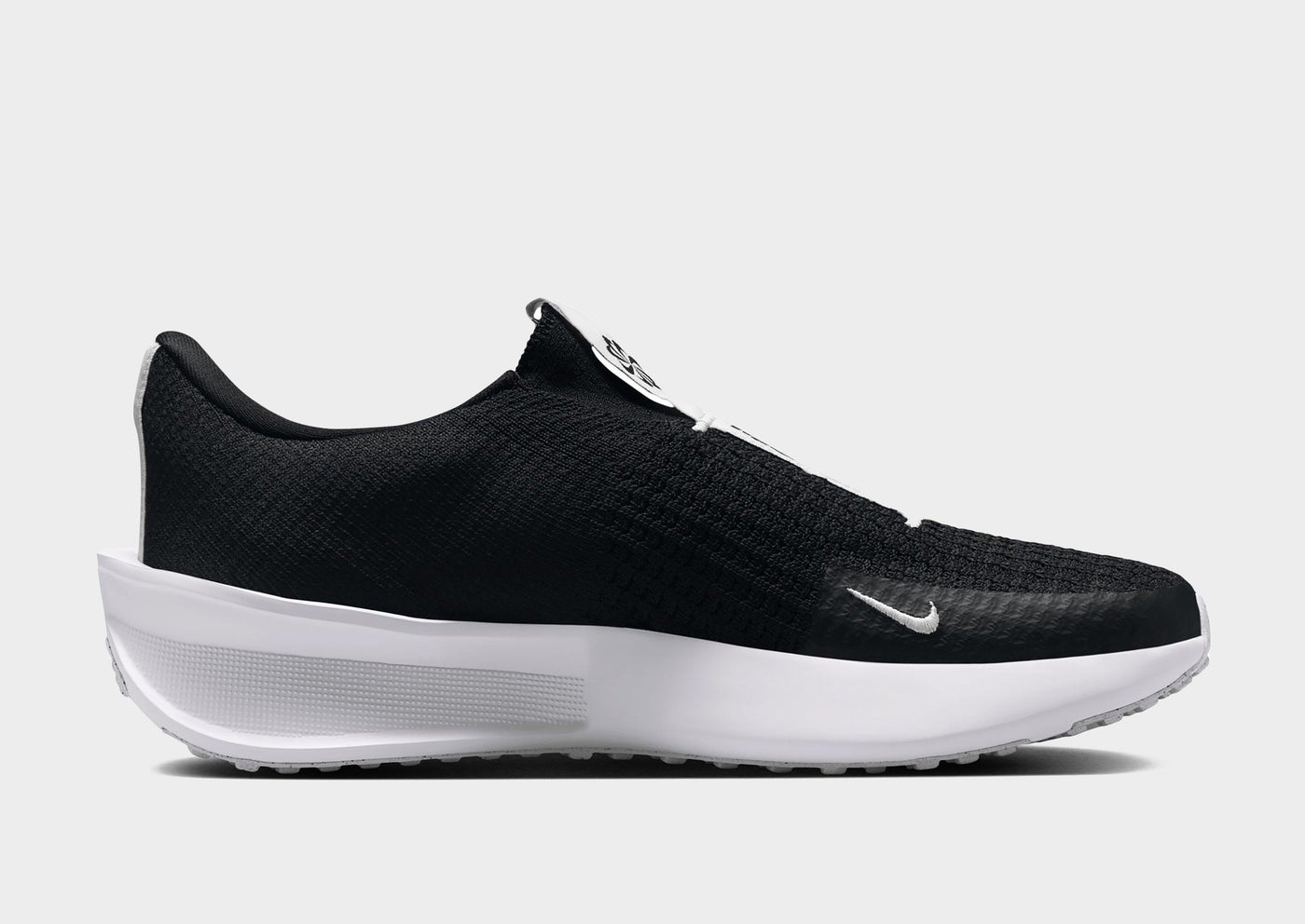 The laceless EasyOn system and bendable heel provide an effortless, hands-free fit. Plus, the stretchy Flyknit accommodates a range of foot shapes for all-day comfort. Scan the QR code to explore the advanced tech behind the Interact Run.
