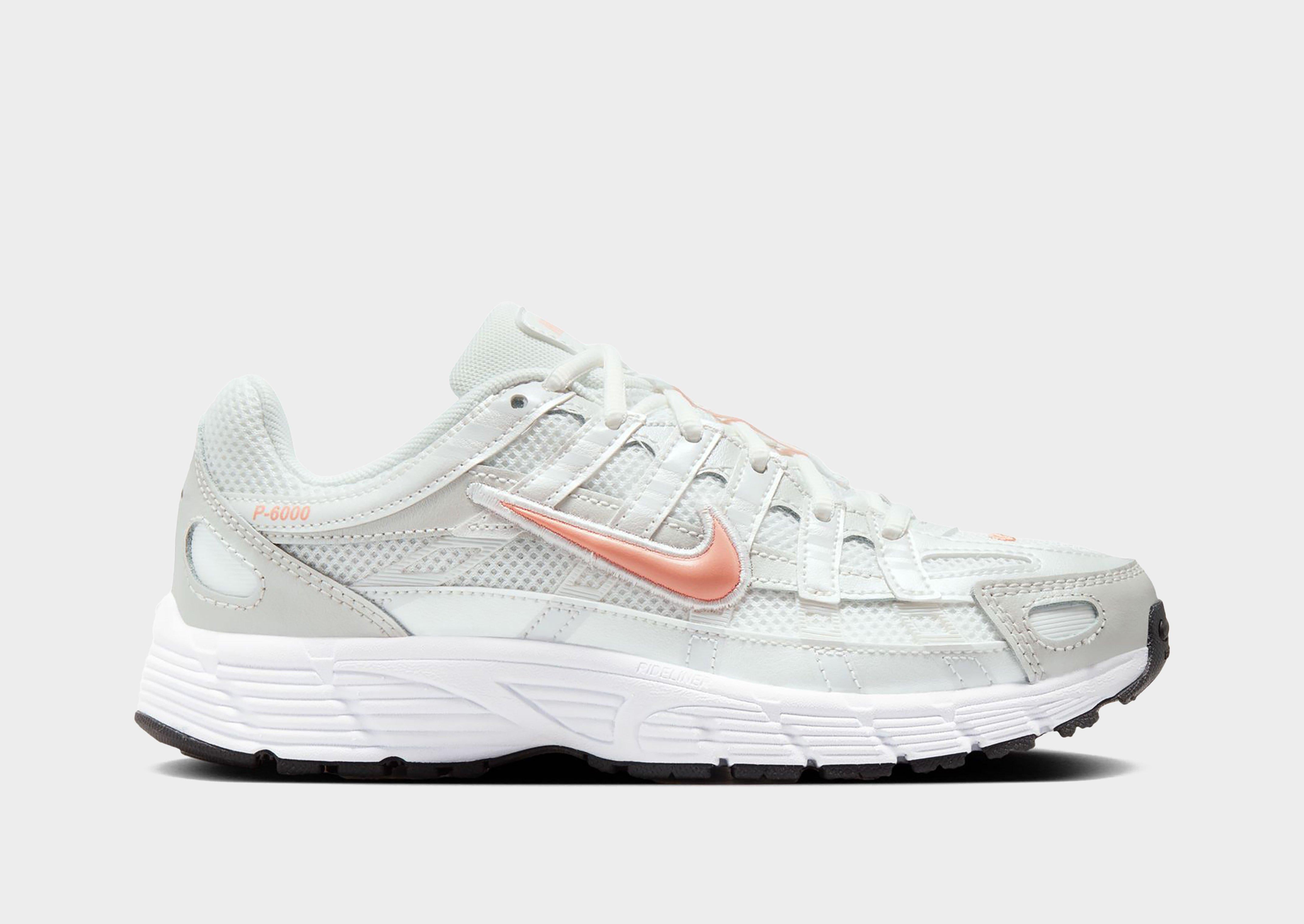 The Nike P-6000 Big Kids' Shoes blend early-2000s running style with modern comfort. The clean white colorway paired with soft peach logo accents creates a fresh, sporty look that stands out anywhere. Built with a breathable mesh and synthetic leather upper, these sneakers offer durability and ventilation for all-day wear. A soft cushioned insole keeps every step comfortable, while the rubber outsole provides long-lasting traction—perfect for active kids on the go.