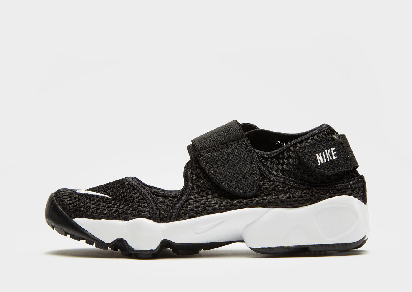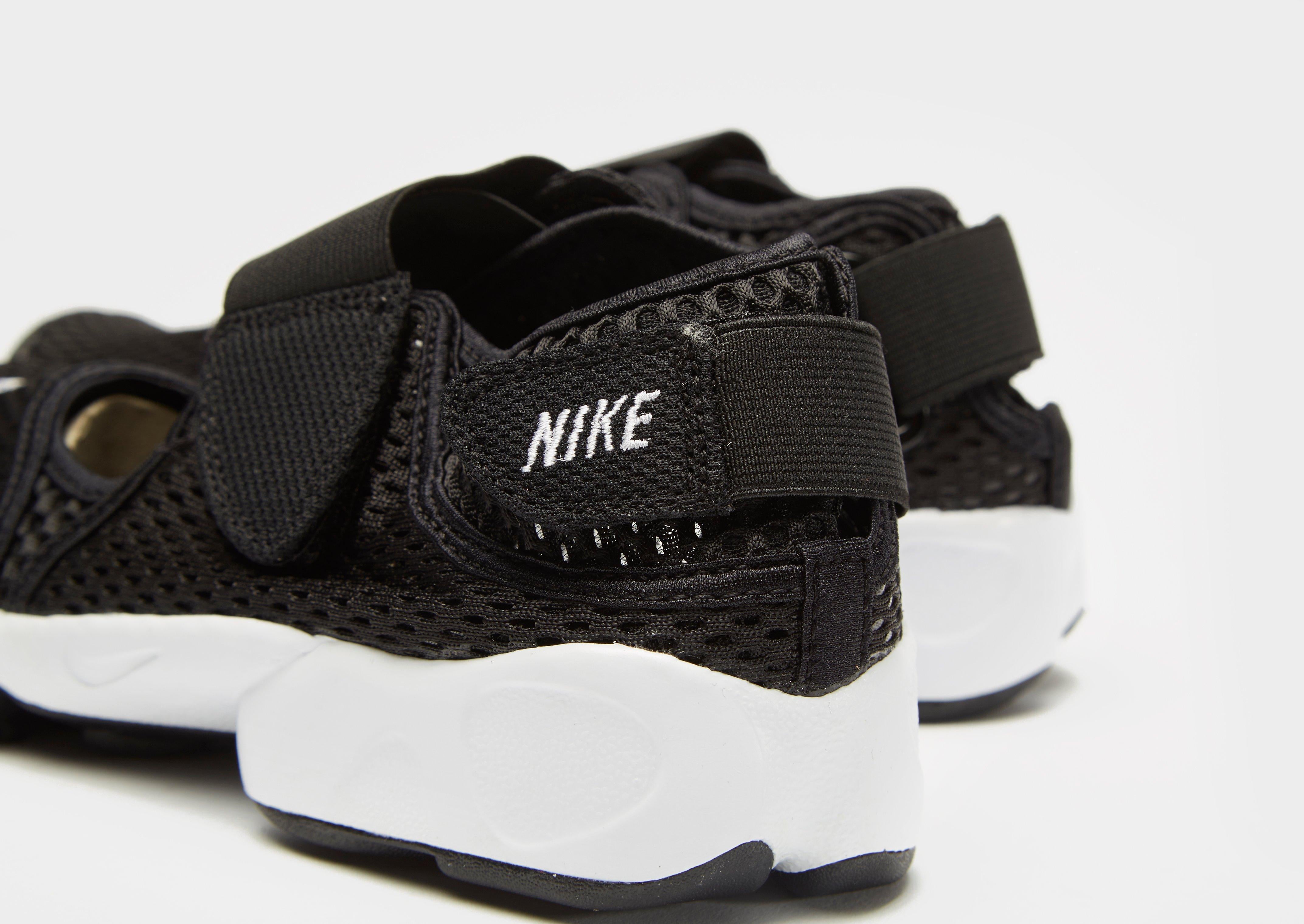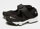 Help your kids find their feet in style with these children's Rift trainers from Nike. Specifically designed to offer ventilation and comfort, these trainers feature an open design, a neoprene-like upper for exceptional flexibility when they need it most, plus Velcro straps on the front and heel for a snug fit. Finished in a black colourway with subtle Nike branding to the toe and heel straps.