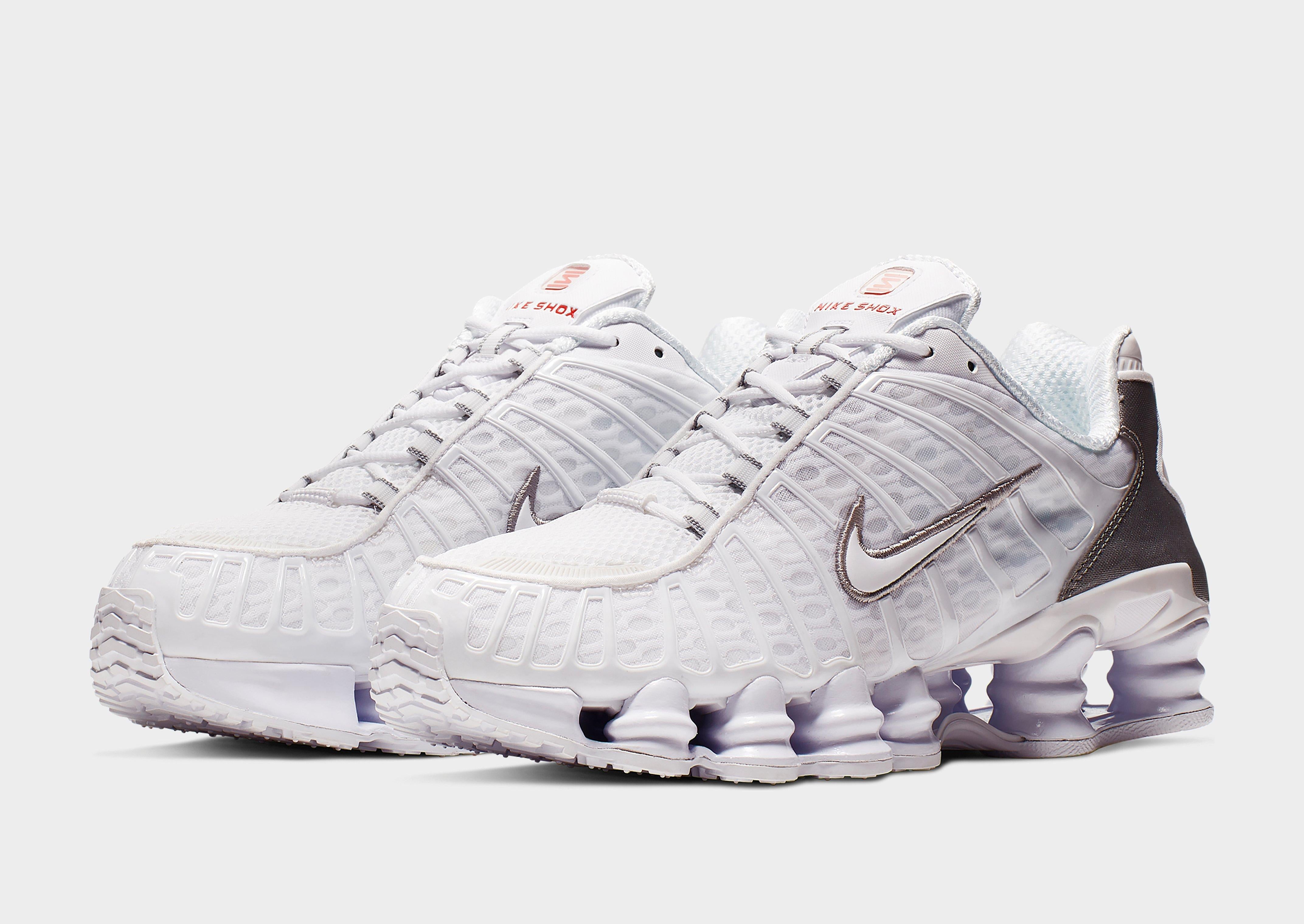 Making waves since its debut, the Nike Shox TL returns with the same bold energy and unmistakable design lines from the original 2003 release. This retro runner features a breathable mesh upper with glossy TPU overlays for a futuristic look, finished in a fresh all-white colourway.