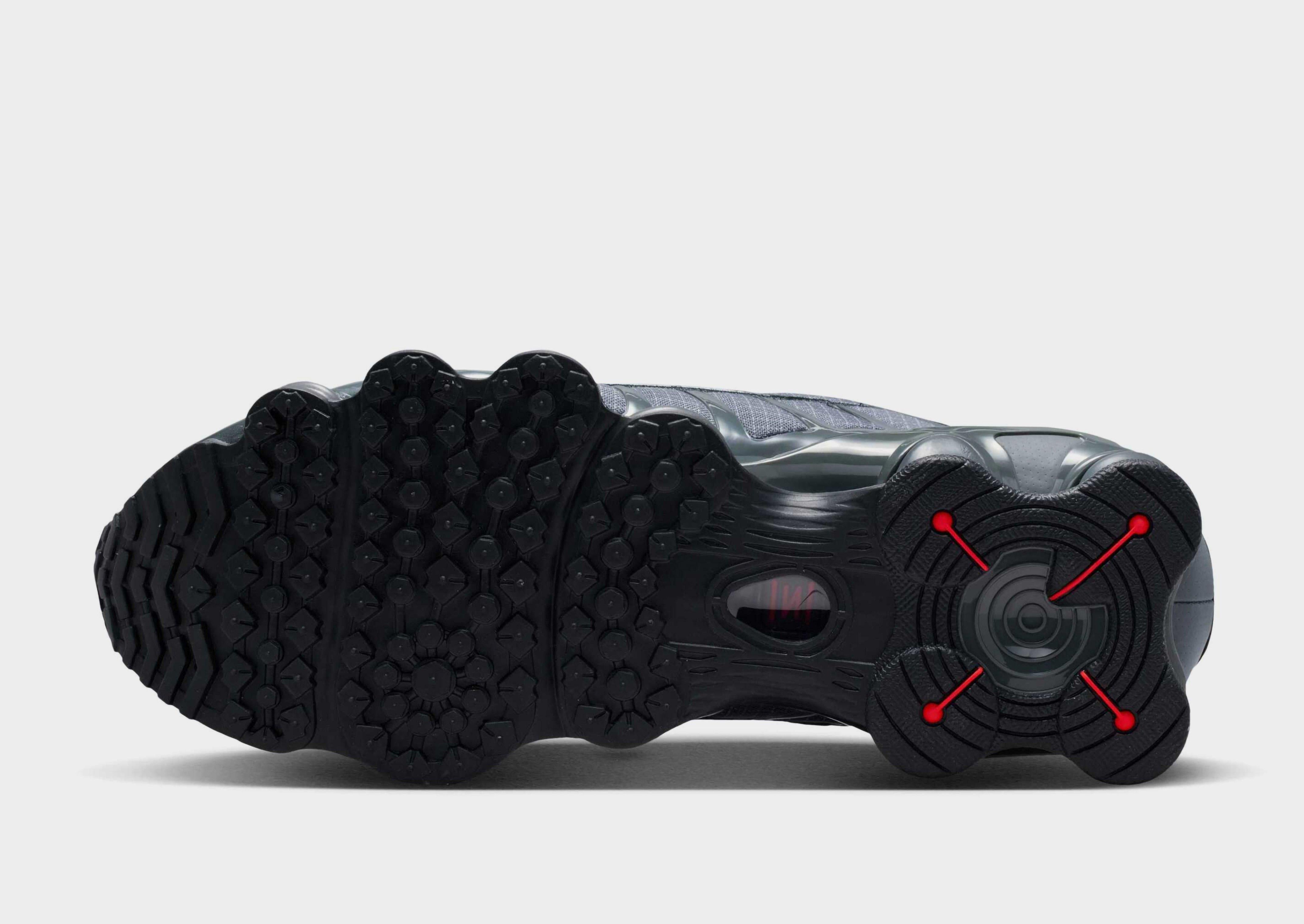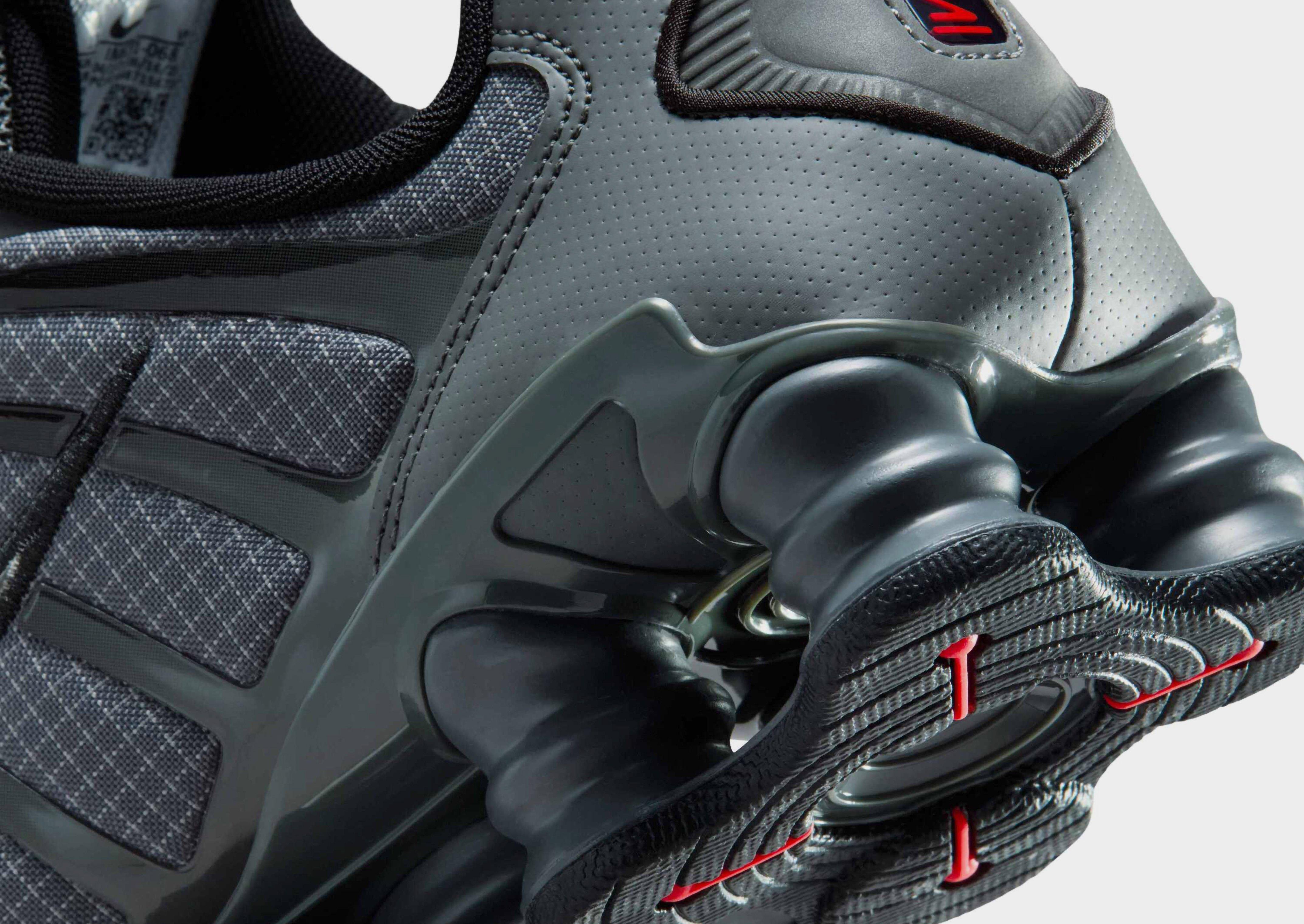 Retro meets futuristic with the Nike Shox TL. Bringing back the 2003 classic in a Grey colourway with Silver details, these JD-exclusive kicks are built to turn heads. The breathable mesh upper features glossy TPU overlays and a tonal lace-up for a secure fit, while full-length Shox columns underfoot deliver that signature springy, all-day comfort. Finished with a grippy rubber sole, Shox branding on the tongue, and the iconic Swoosh embroidered on the side, these trainers are a statement you can feel and see.