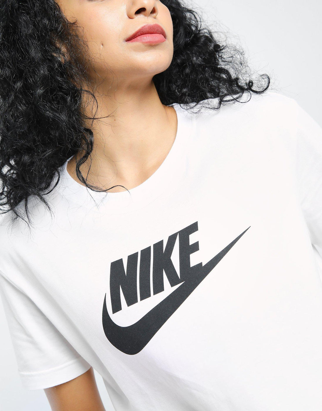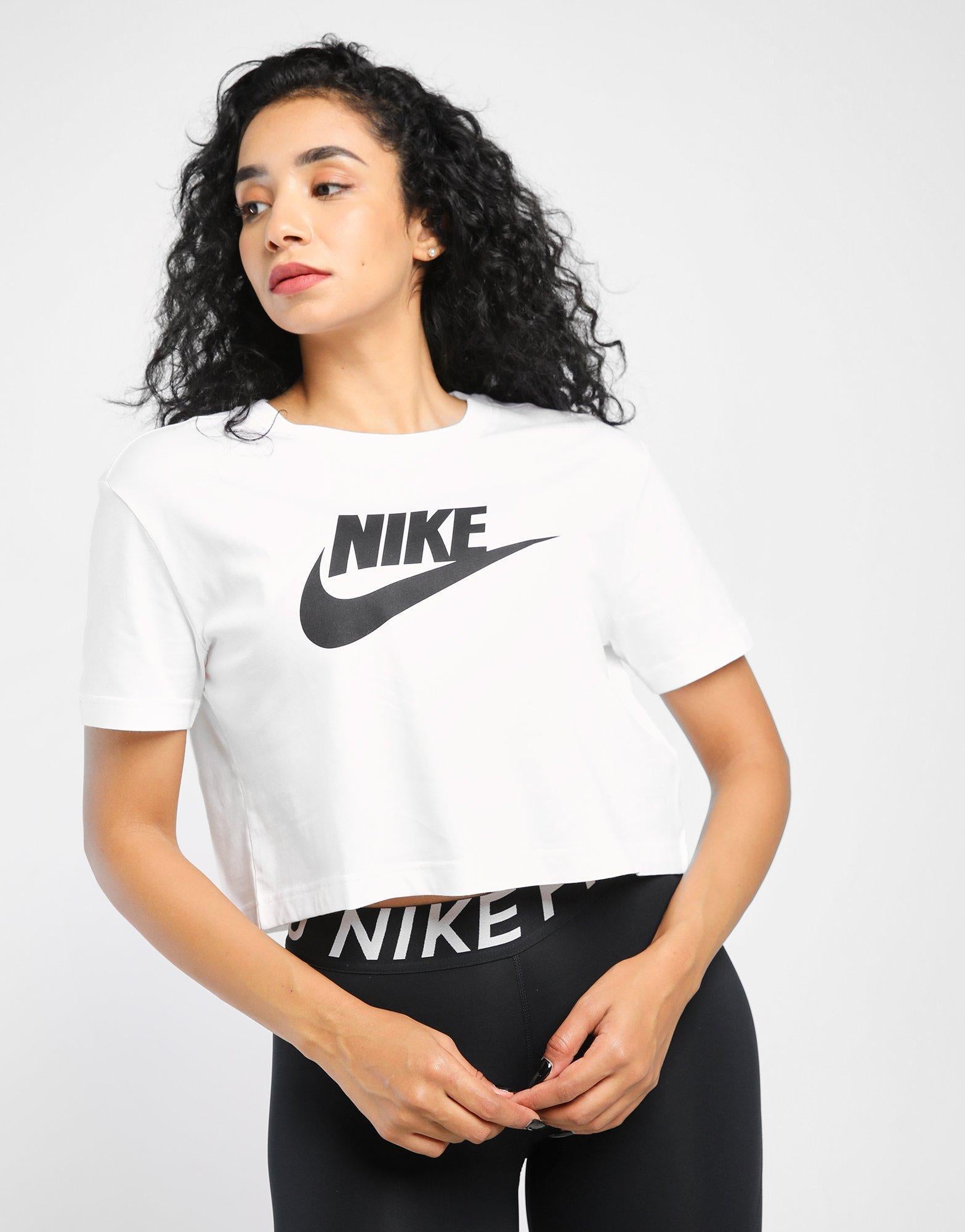 The Nike Sportswear Essential T-Shirt delivers soft cotton comfort with a modern, cropped fit that hits above the hips.