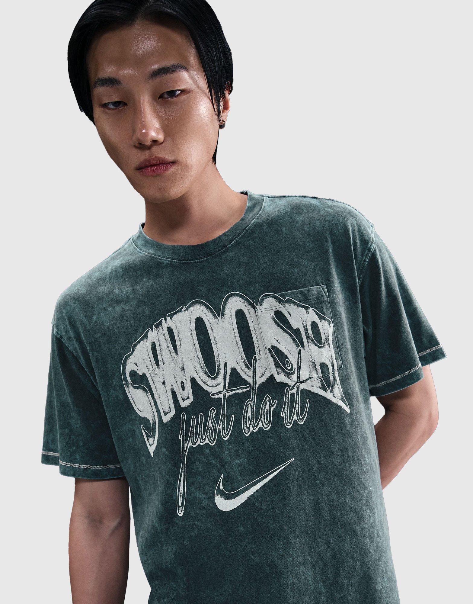 Bring a vintage edge to your everyday rotation with the Nike Sportswear Max90 T-Shirt. Crafted from soft, premium cotton, this tee delivers all-day comfort with a slightly oversized fit that feels relaxed and easy to wear. The washed green colourway gives it a worn-in, retro look, while the bold “Swoosh Just Do It“ graphic across the chest adds a touch of attitude. Finished with a ribbed crew neckline and dropped shoulders, this piece captures effortless streetwear energy with a classic Nike twist. | Machine washable