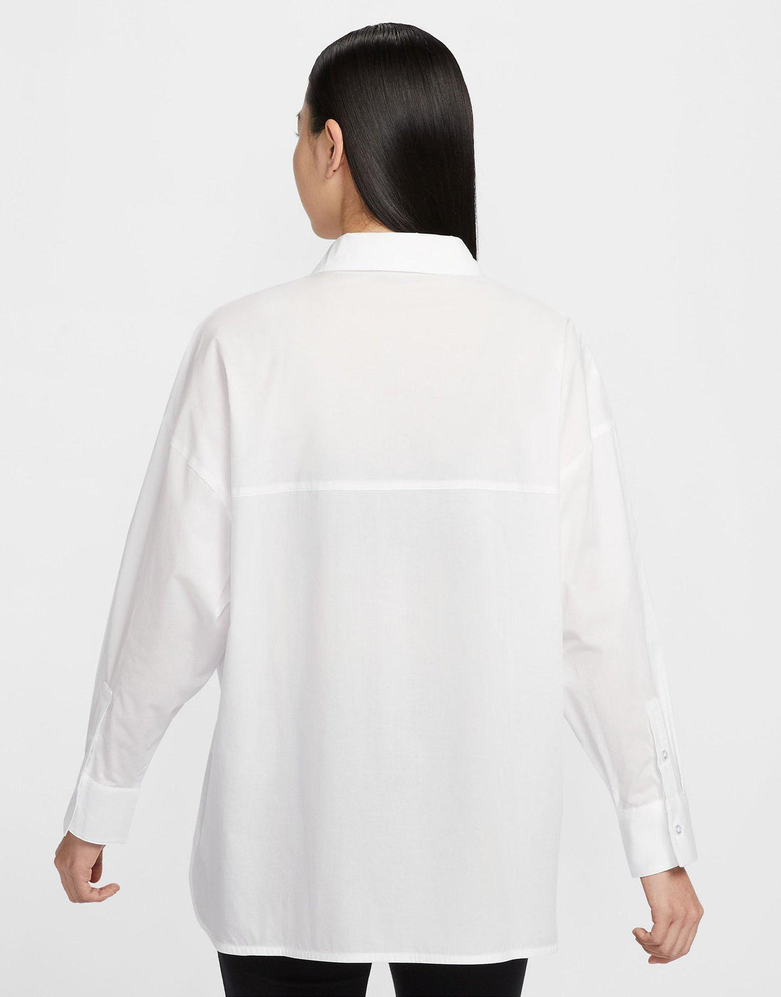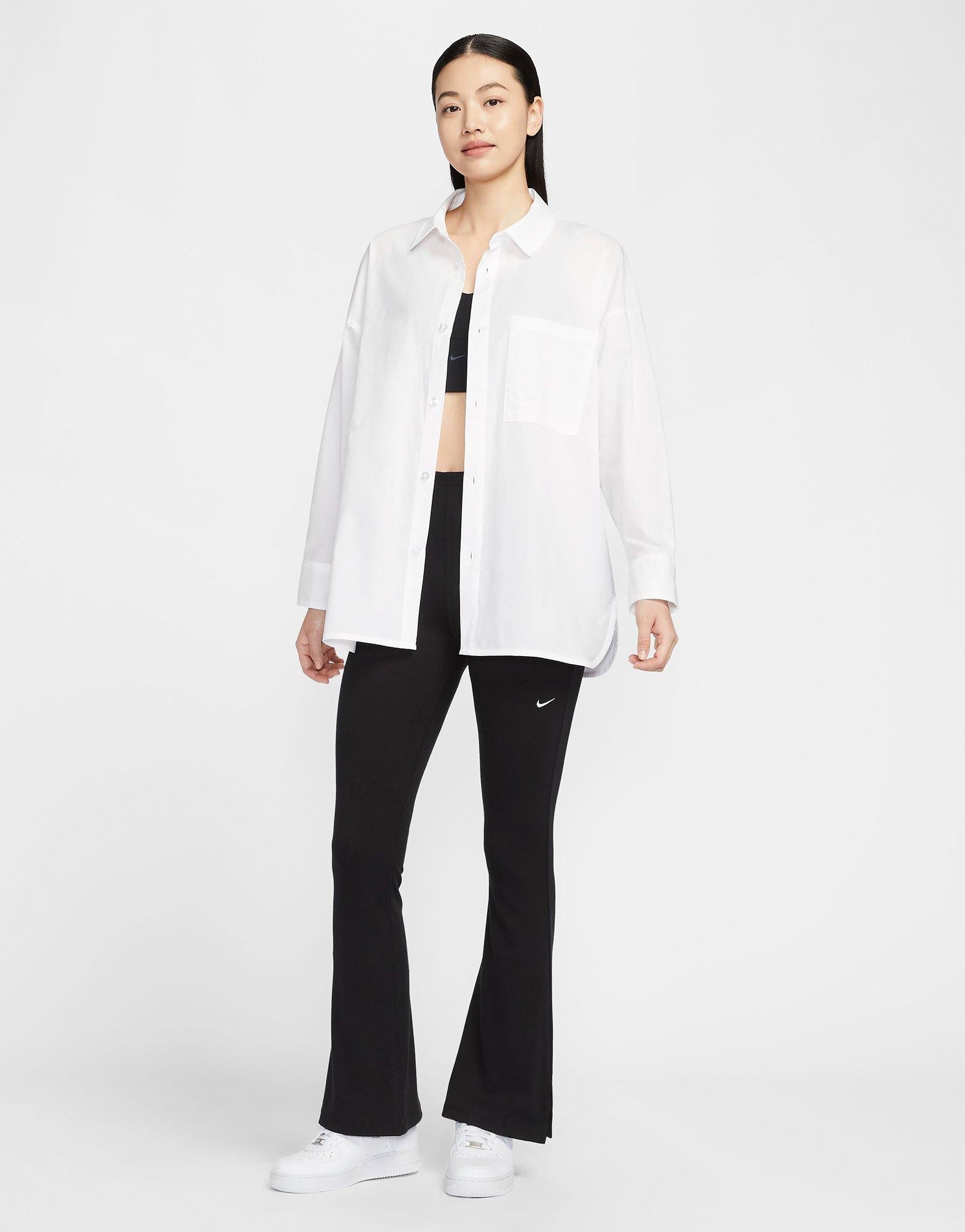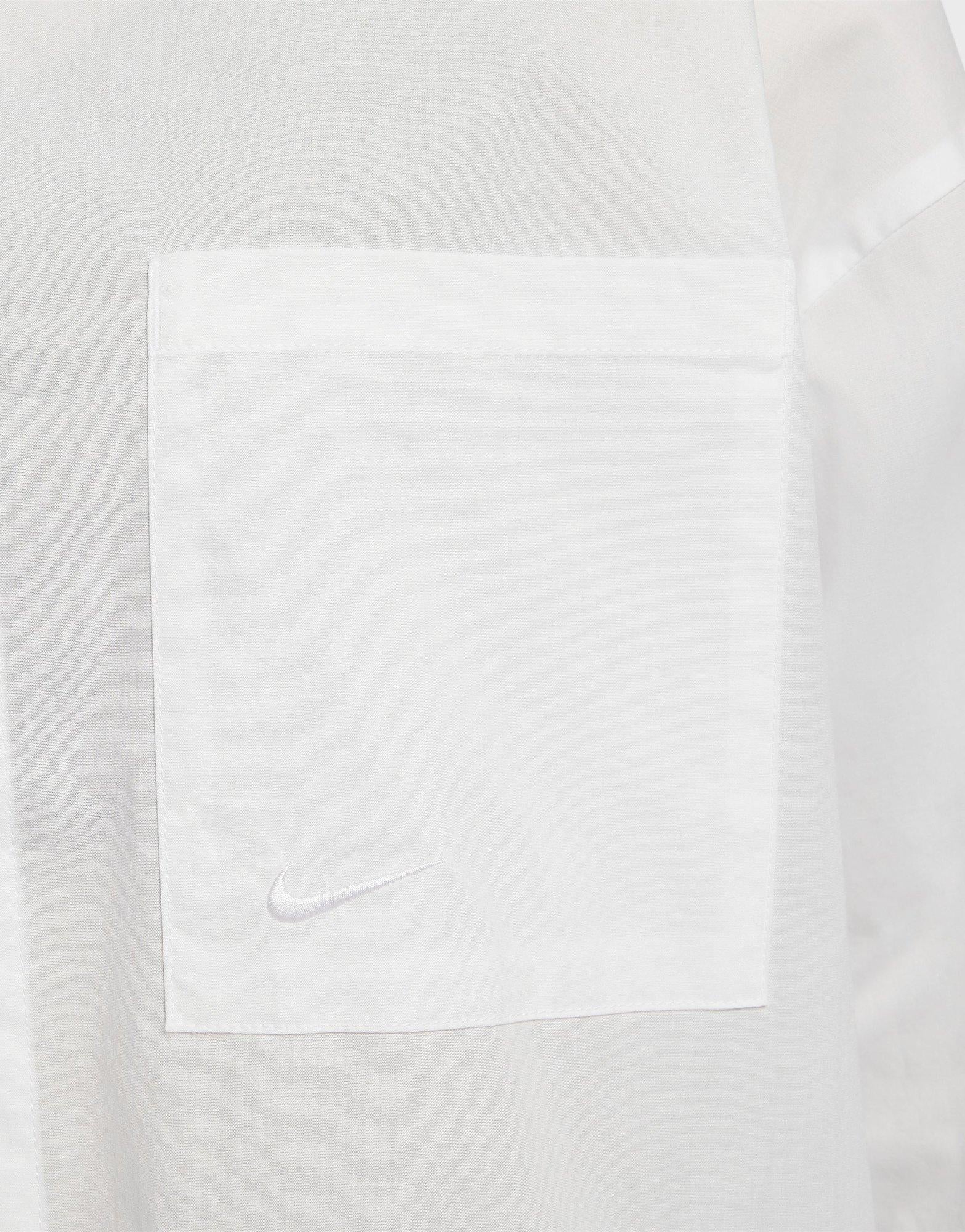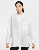 Achieve effortless style with the Nike Sportswear Chill Poplin Women's Loose Long-Sleeve Button-Up Top. Made from lightweight, breathable poplin fabric, this top offers ultimate comfort for any occasion. The loose, longline fit, chest pocket with an embroidered Swoosh, and buttoned cuffs bring both style and functionality. Side vents ensure ease of movement, while its easy-care fabric makes it perfect for a laid-back, chic look.