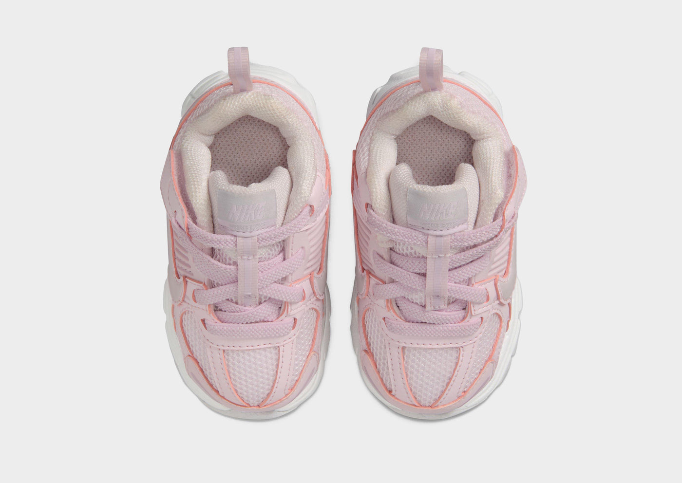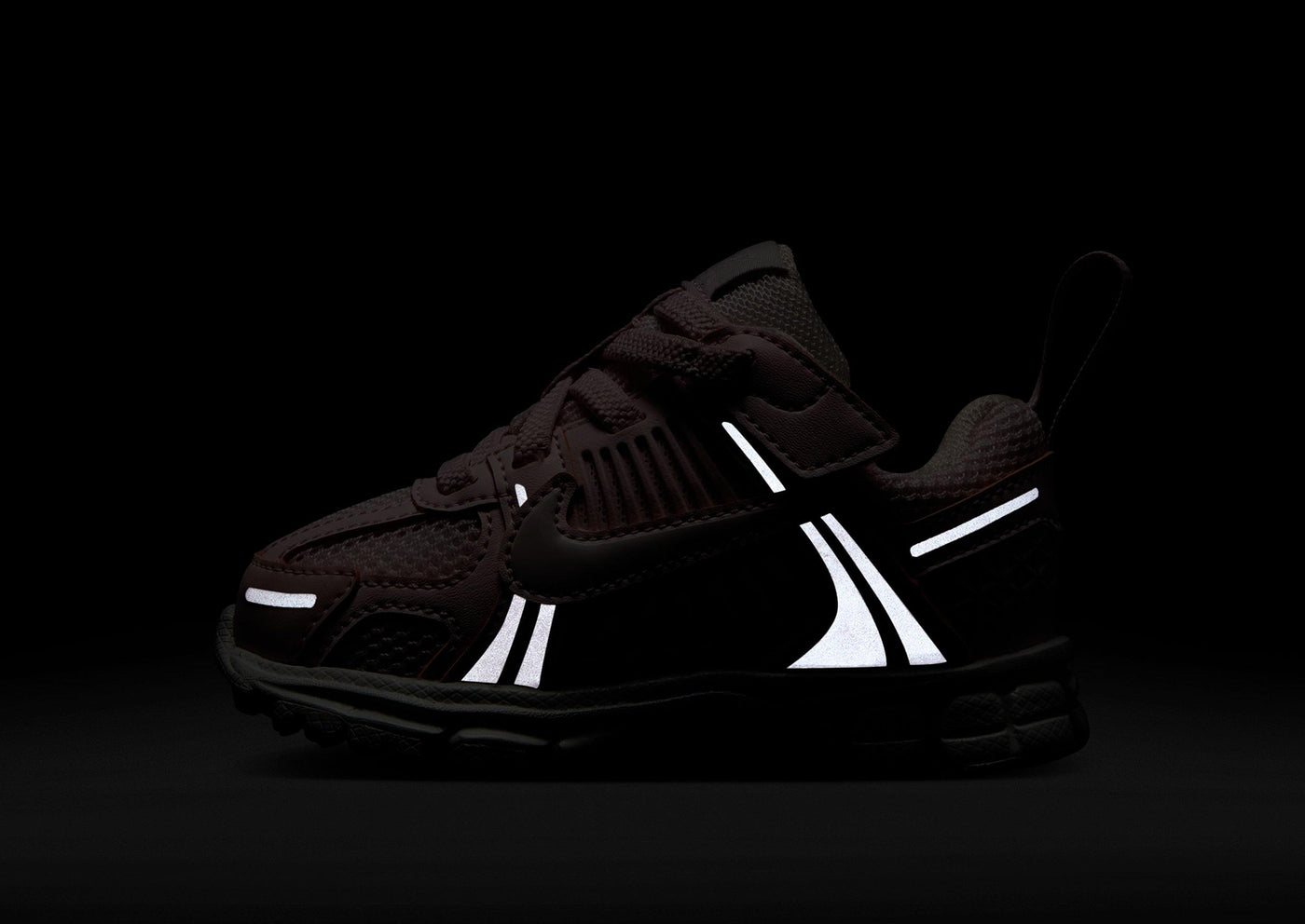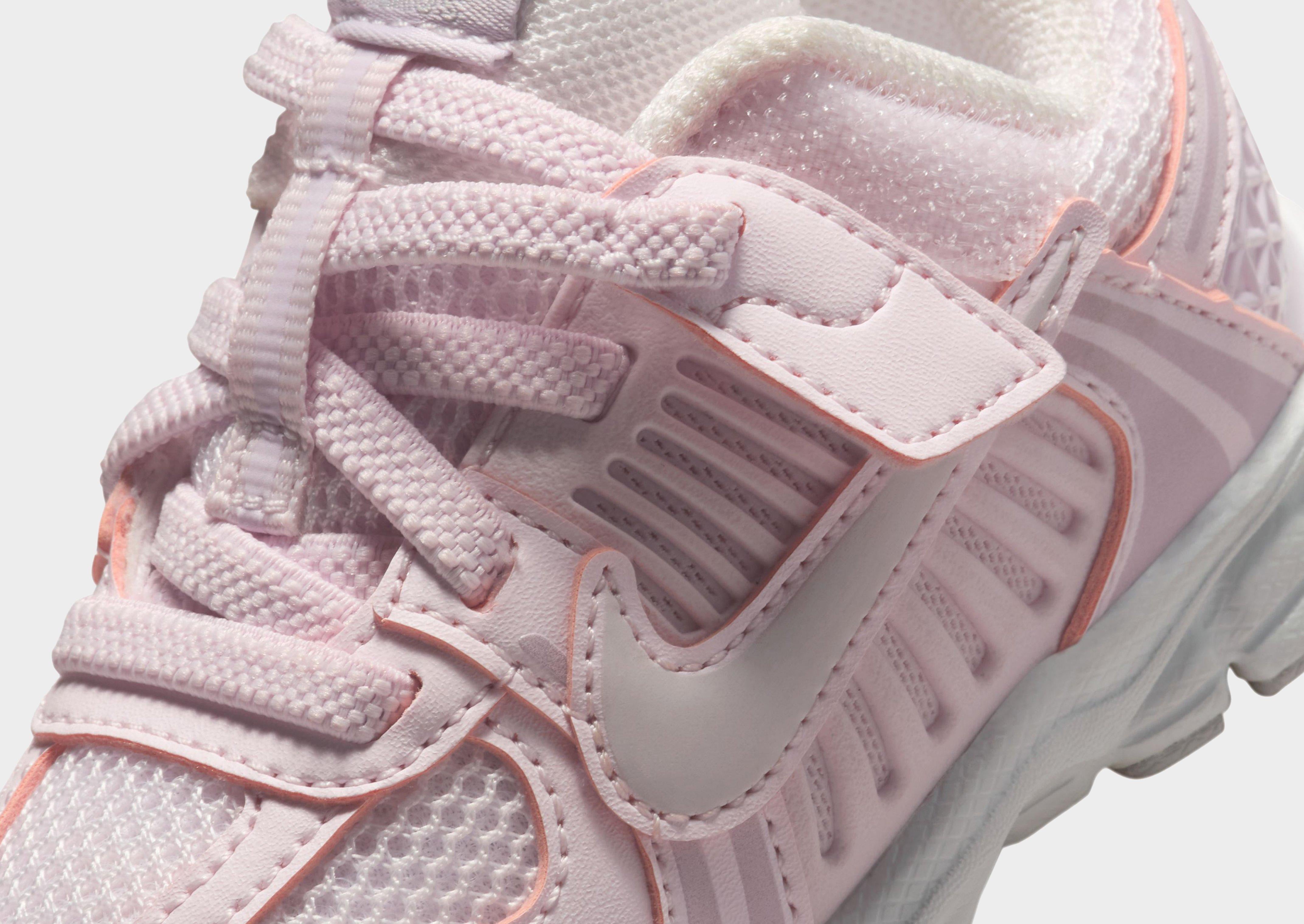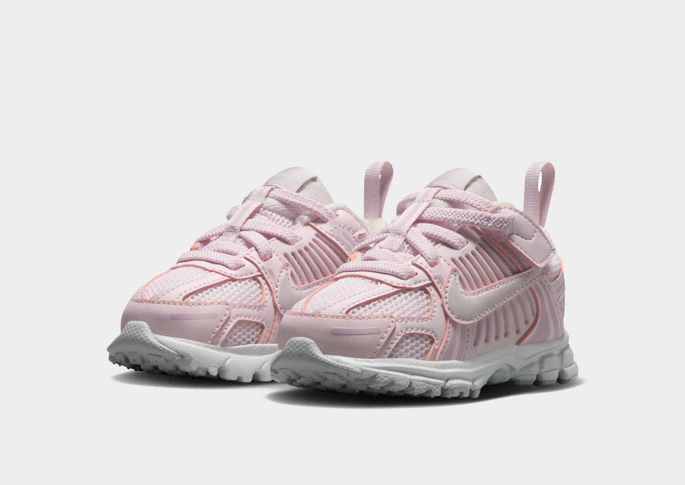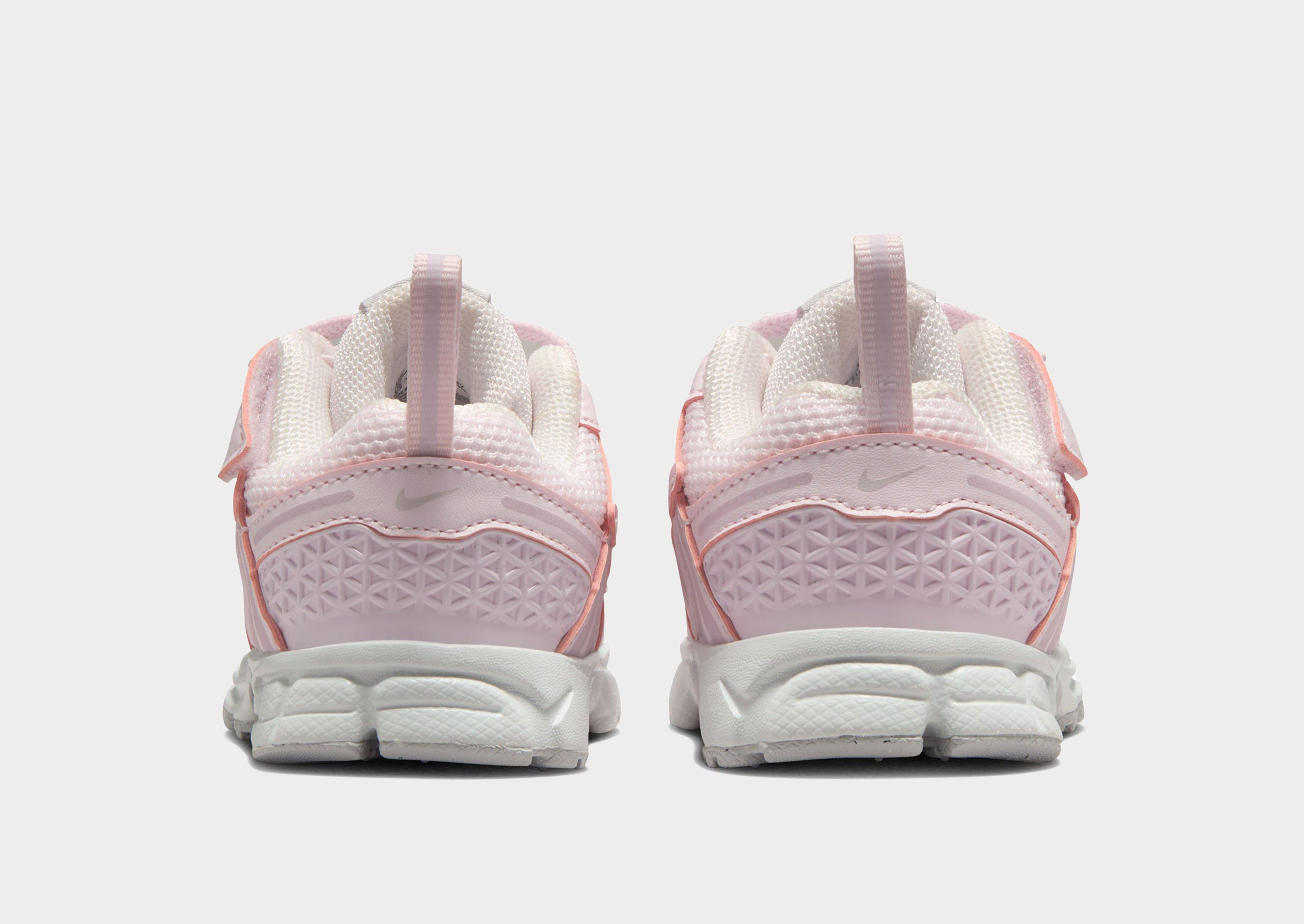 These Nike Vomero 5 for your little one blend futuristic design with comfort, featuring plush foam cushioning and a layered upper made of mesh, synthetic leather, and plastic accents. Elastic laces make them easy to put on and take off, while synthetic leather ensures durability and plastic side caging adds support. Mesh panels and heel ventilation keep feet cool and light, and the rubber outsole delivers reliable traction for all-day play.
