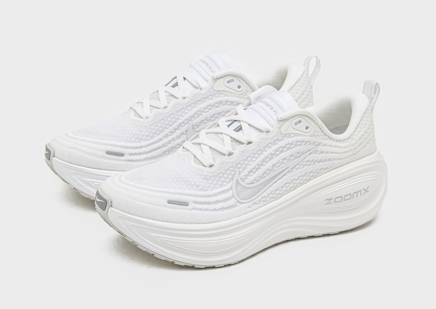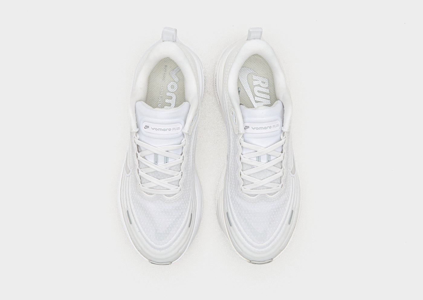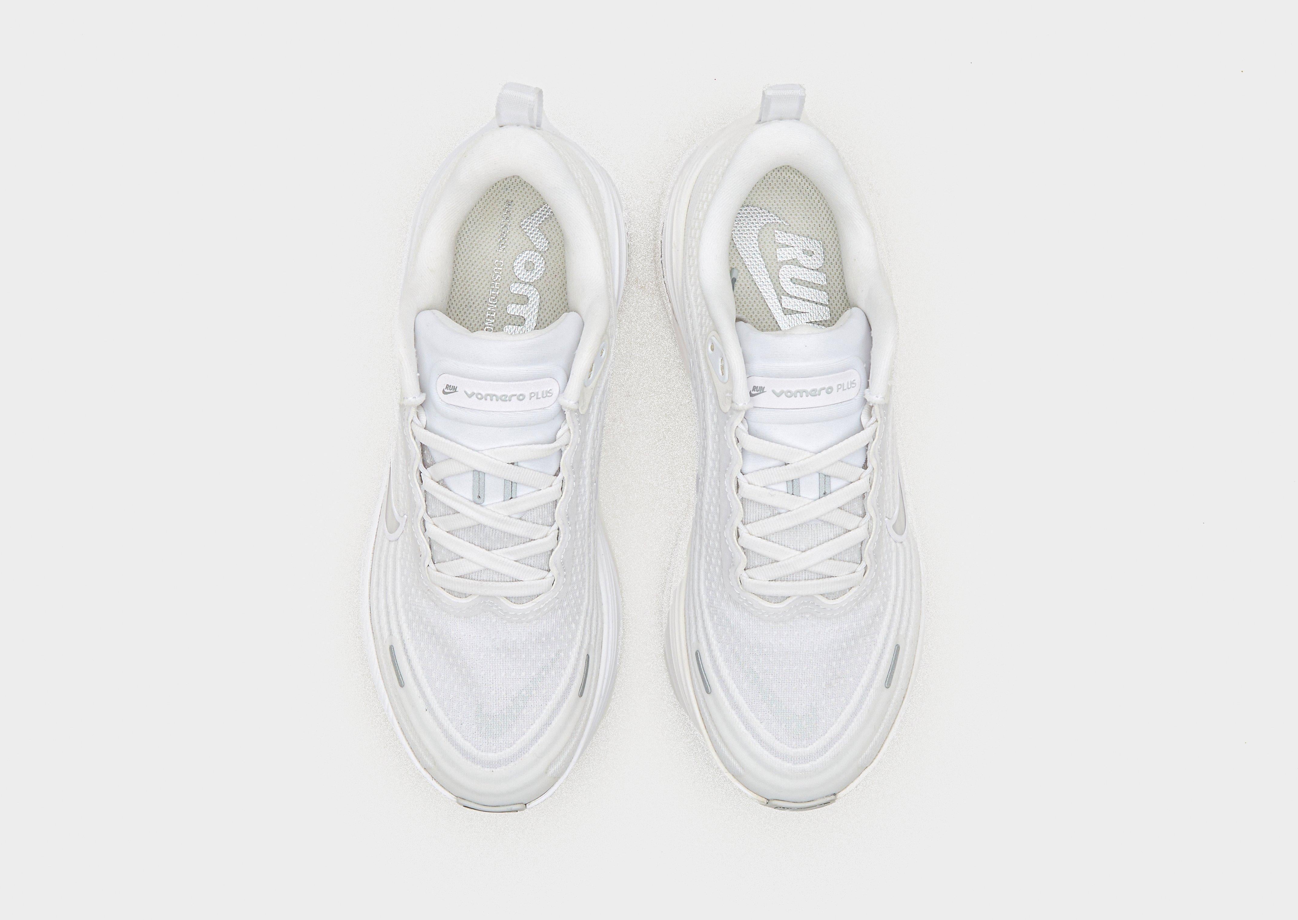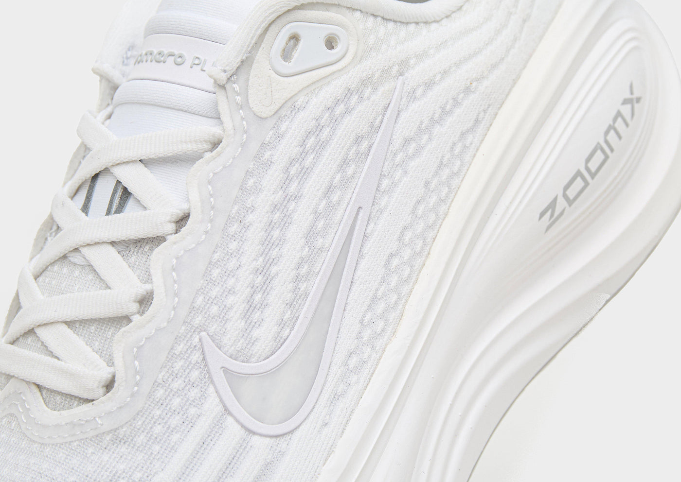 Ready to run? These women's Vomero Plus running shoes from Nike take cardio to the next level. With a light and breathable mesh upper, they have a padded collar for support. The heel tab offers easy on-off. Underfoot, they sit on a chunky ZoomX foam midsole for a springy boost. The durable rubber outsole keeps you gripped. Landing in Summit White and Photon Dust, they're finished with signature Swoosh branding.