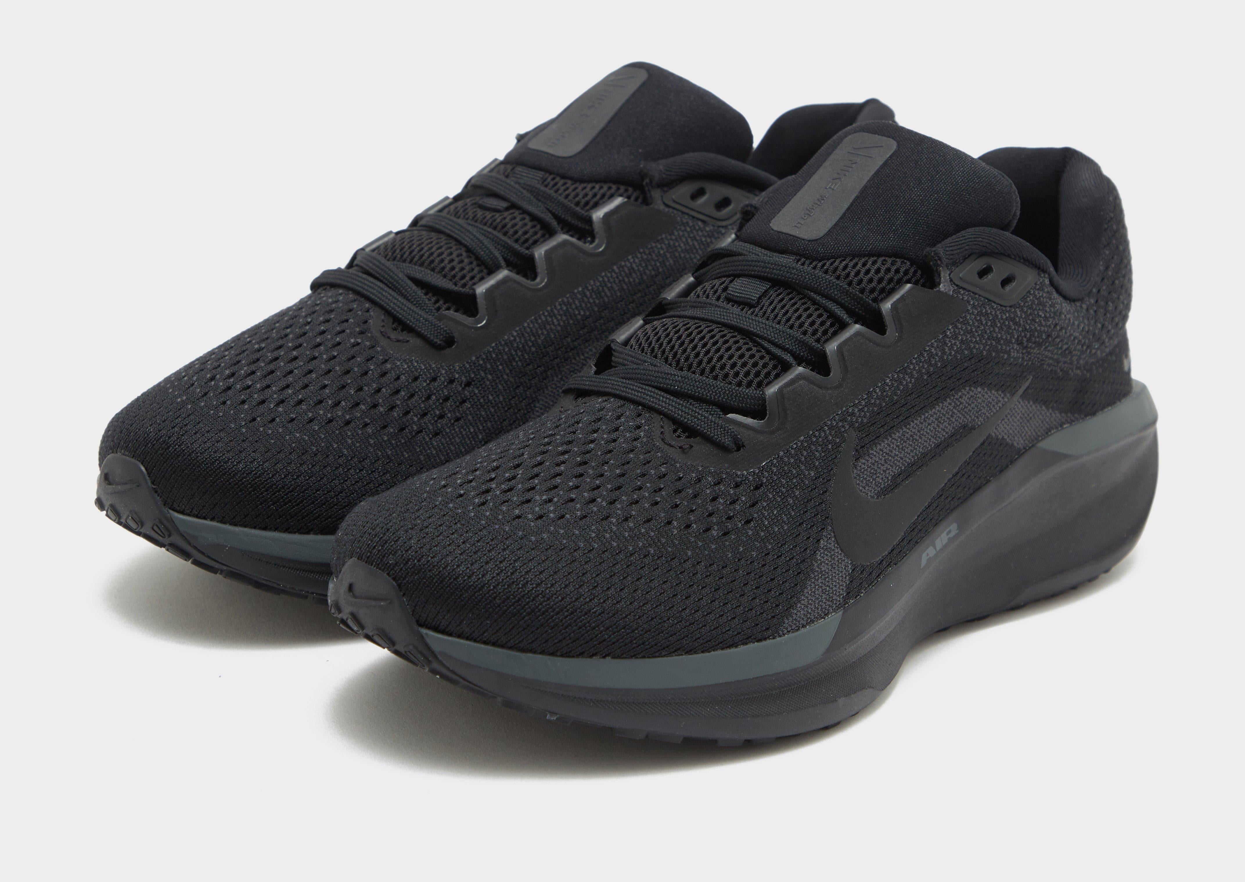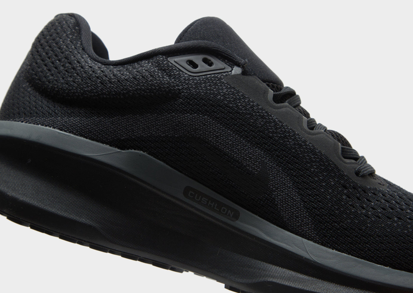 Push your training with these men's Winflo 11 trainers from Nike. In a Black and Anthracite colourway, these running kicks have a lightweight and breathable mesh upper for a lasting wear. They feature a lace fastening with an elastic midfoot band to lock you in, as well as a low-cut padded ankle for support. Underfoot, a Cushion 3.0 foam midsole combines with a full-length Nike Air unit for a smooth ride, with a rubber outsole for traction. Signed off with the Swoosh to the sidewalls.