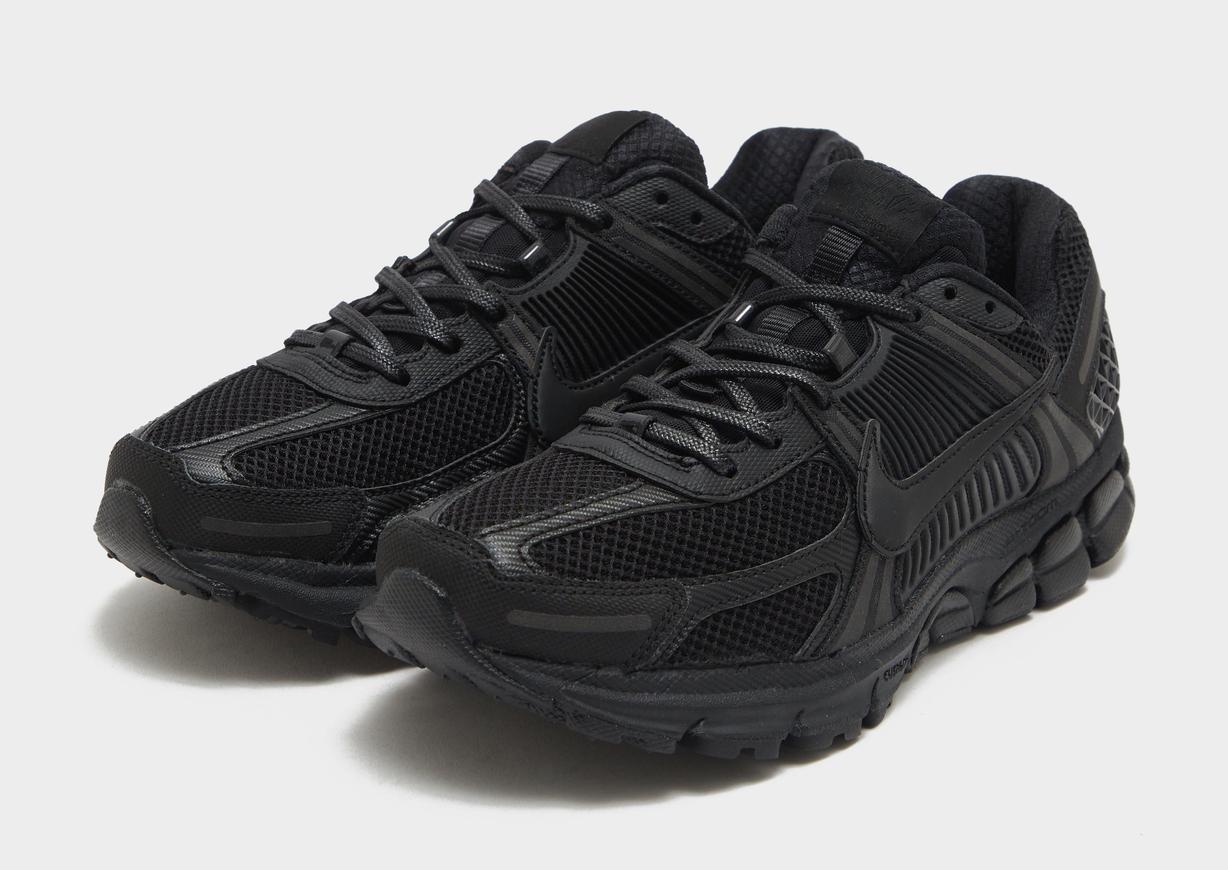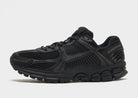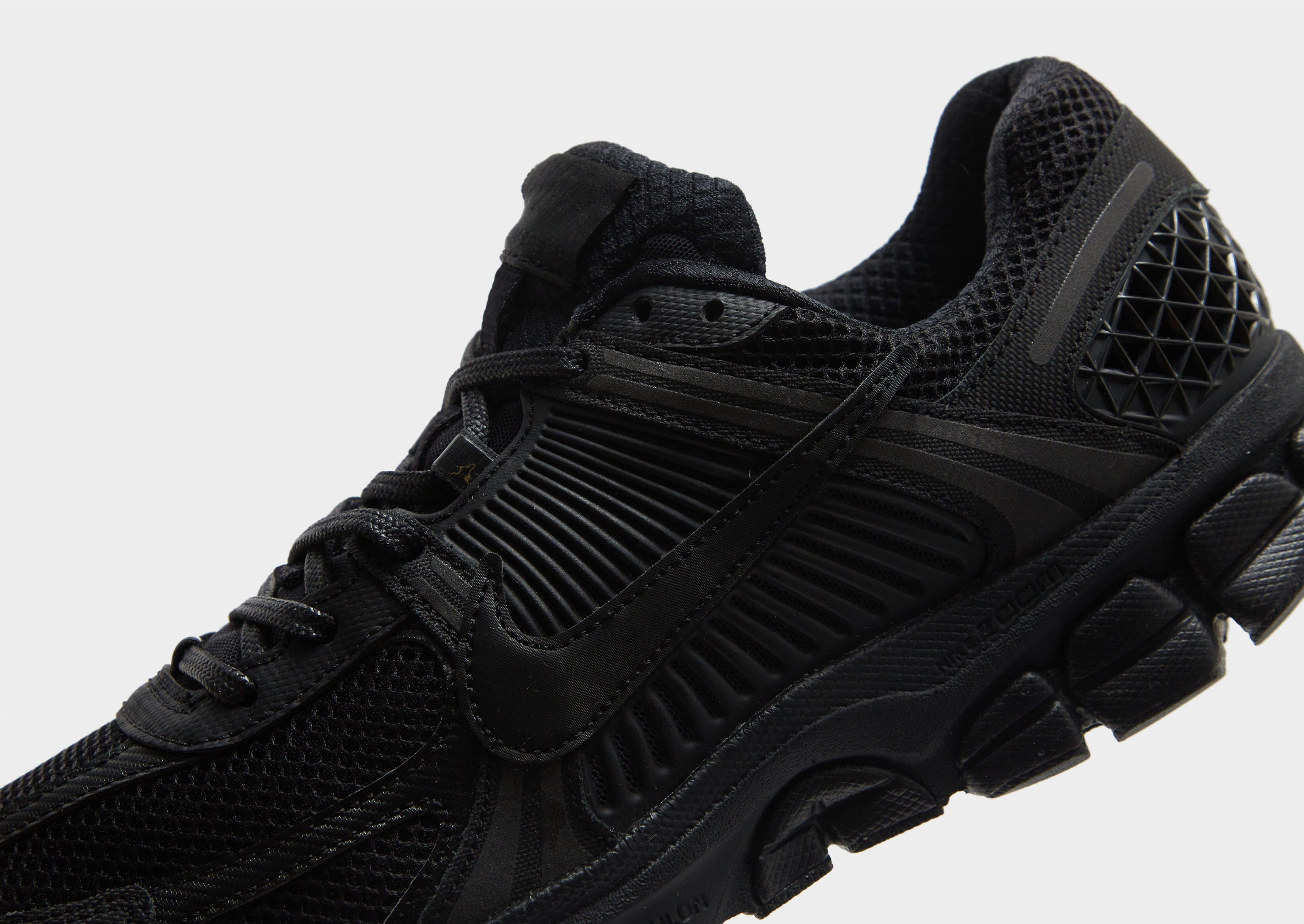OG runners get a refresh with these men's Zoom Vomero 5 trainers from Nike. In a triple Black colourway, these runners have a breathable TecTuff mesh upper with durable synthetic overlays for a lasting wear. They feature a lace fastening to lock you in and padded collar for support. Underfoot, the foam midsole pairs with Zoom Air cushioning for a smooth, spongy ride. With a flexible rubber outsole for traction, these trainers are finished off with the Swoosh to the sidewalls