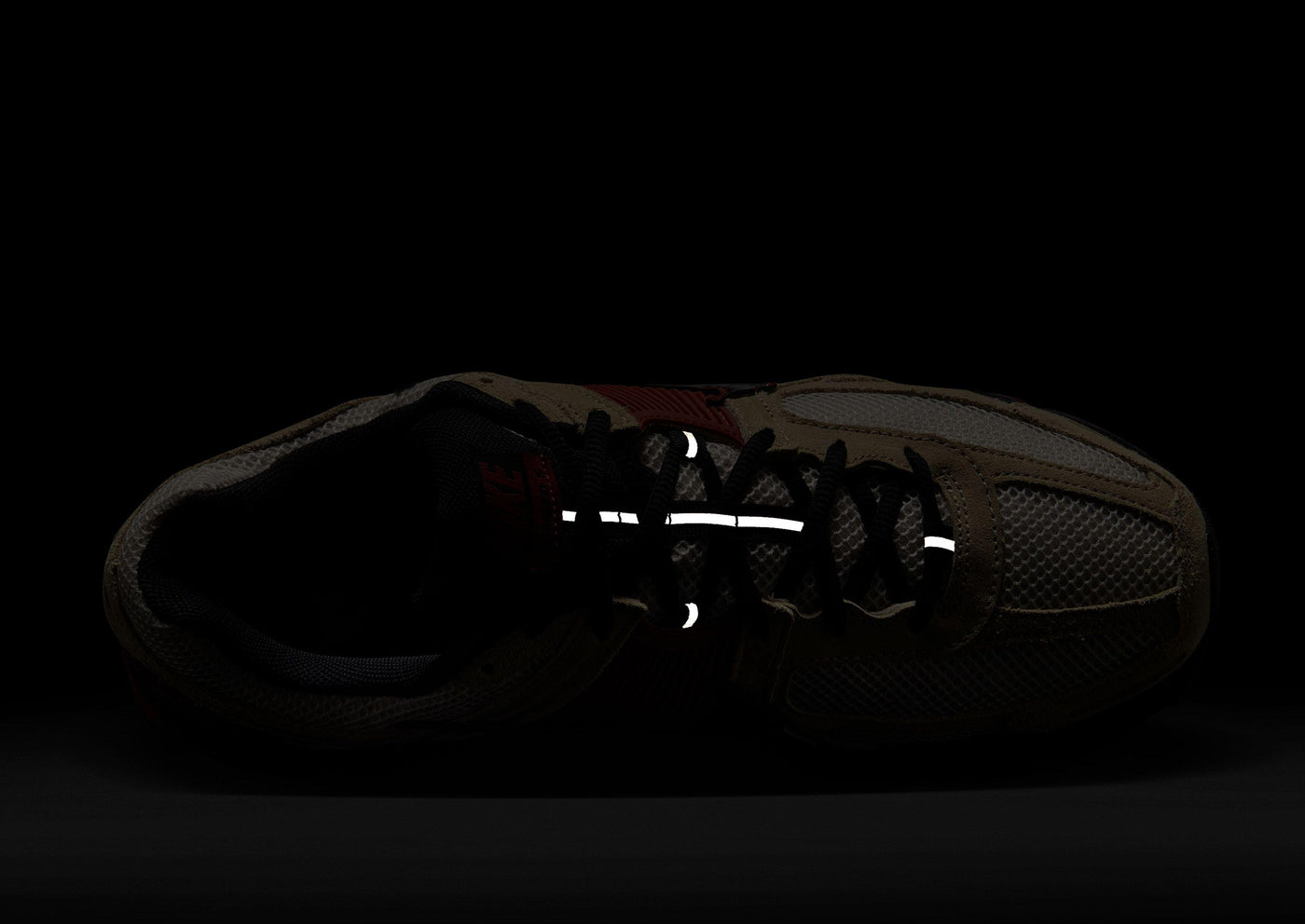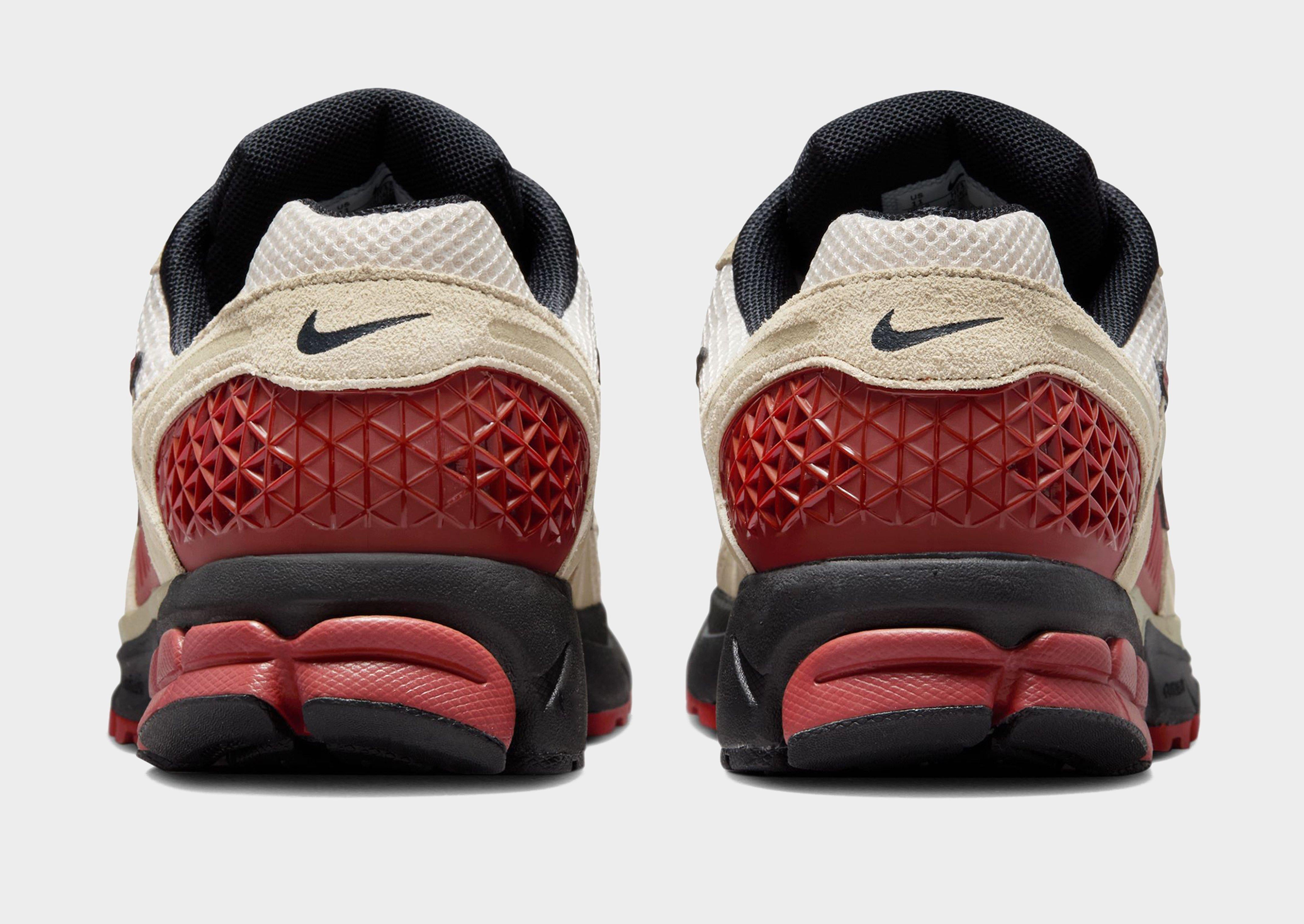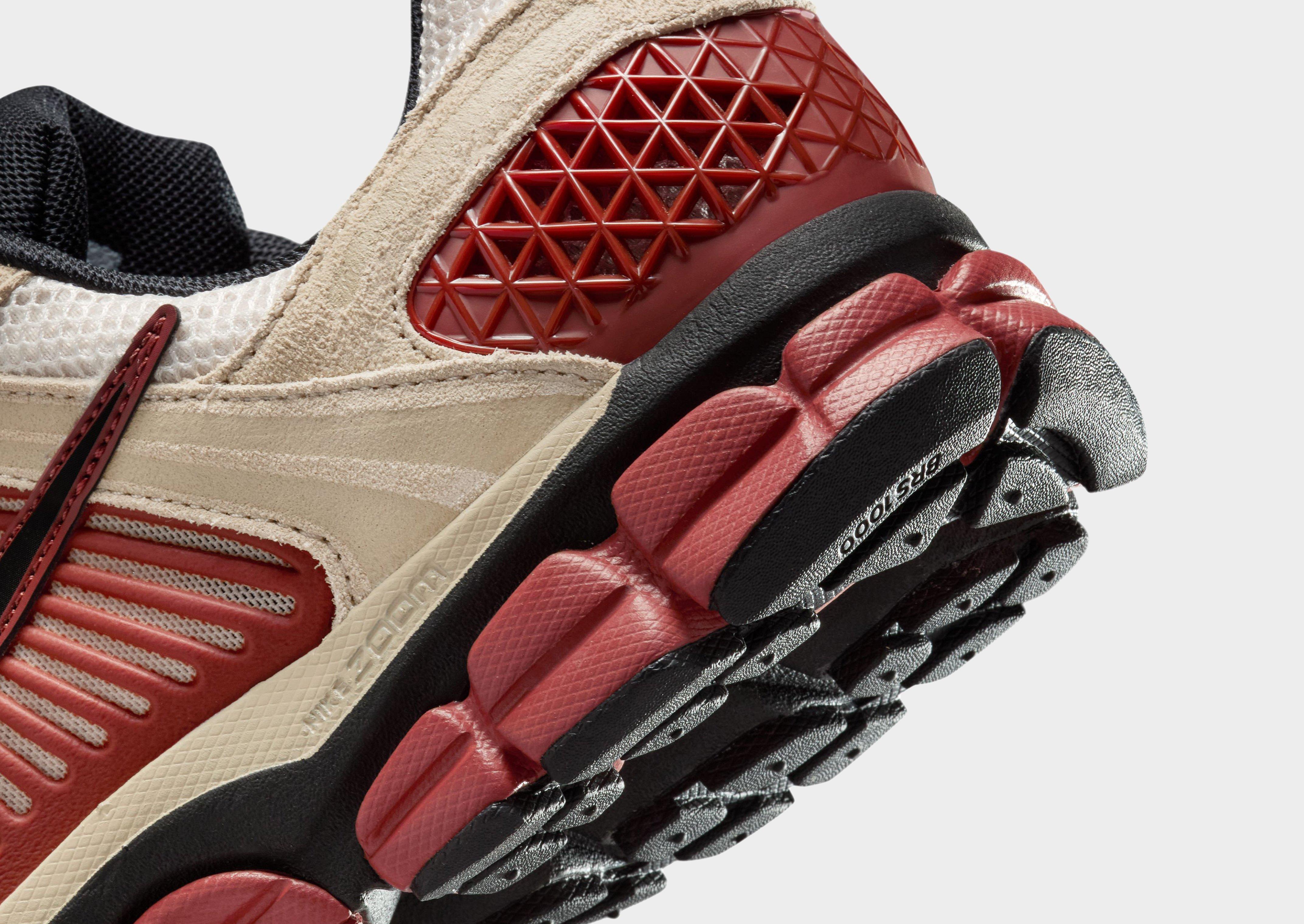 Elevate your style with the Nike Zoom Vomero 5, blending futuristic retro vibes with modern innovation. The unique design features a dynamic mix of light brown, brick red, and black accents, creating a bold, eye-catching look. Layered with textile, leather, and plastic details, this shoe combines premium materials for a standout aesthetic.