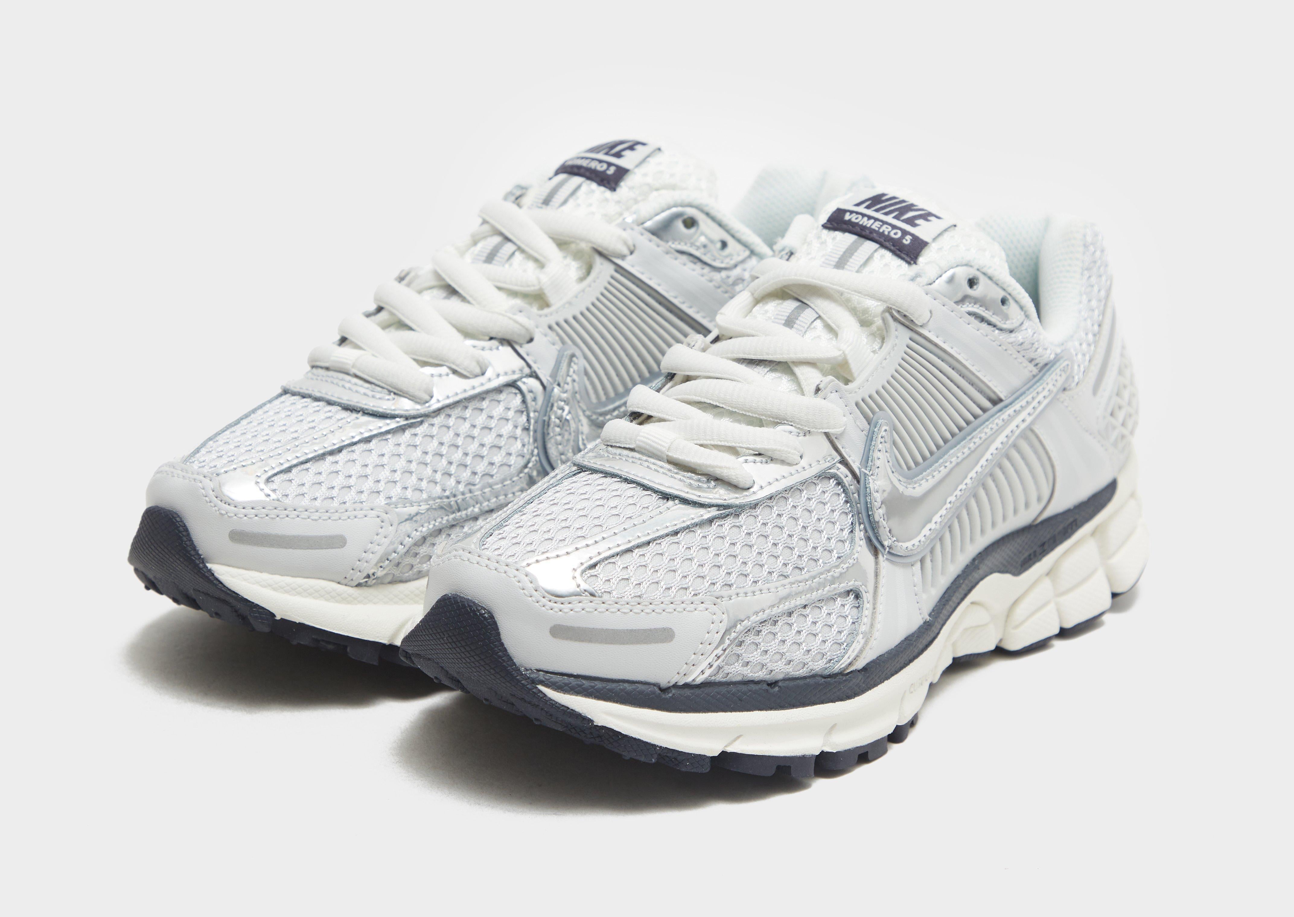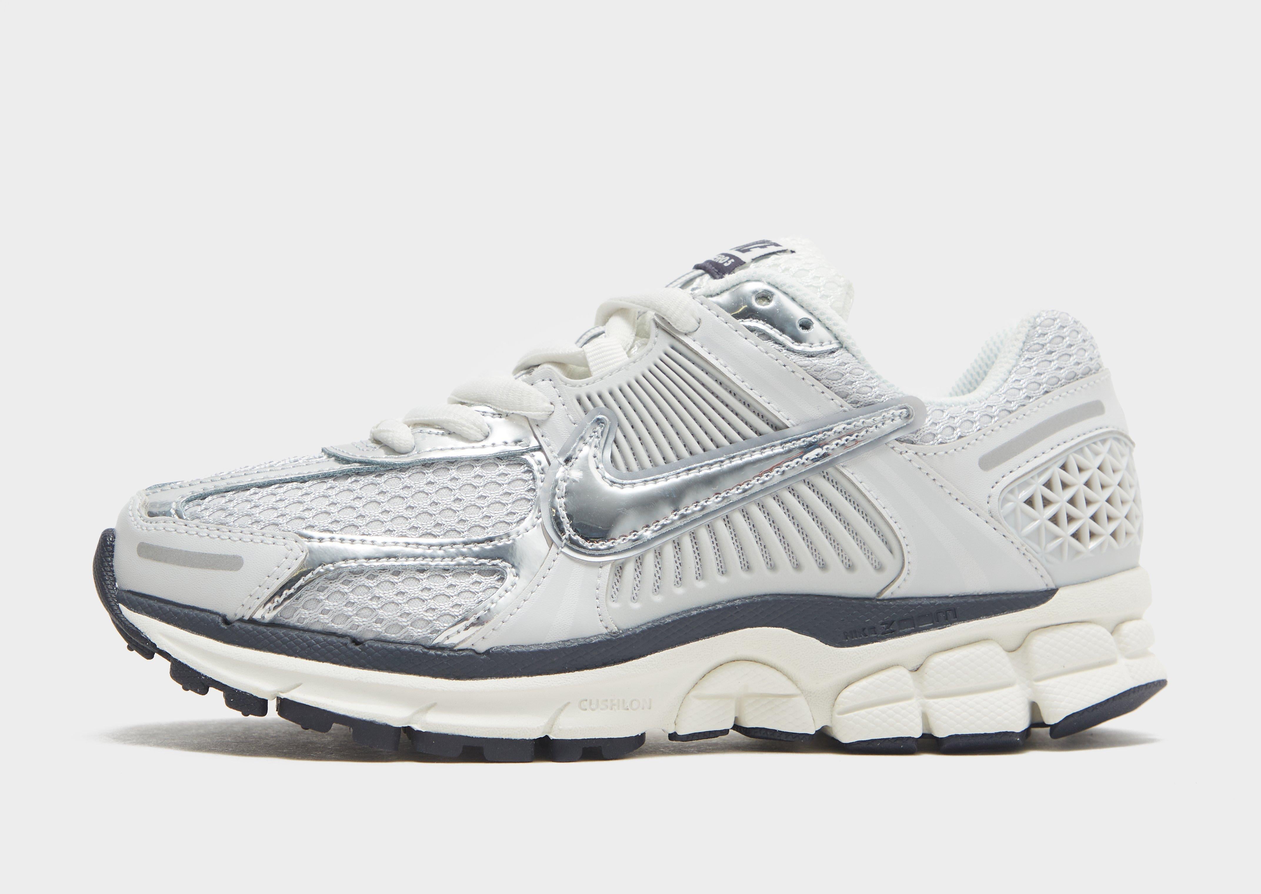 Bring the OG vibes with these women's Zoom Vomero 5 sneakers by Nike. Landing in an Photon Dust and Chrome colourway, these runners have a layered design, with breathable mesh and real and synthetic leather overlays. They feature a tonal lace-up closure with soft padding around the collar to lock you in, with a chunky responsive Zoom Air cushioned midsole for a smooth ride. They have a tough rubber outsole for traction and are signed off with classic Nike branding throughout.