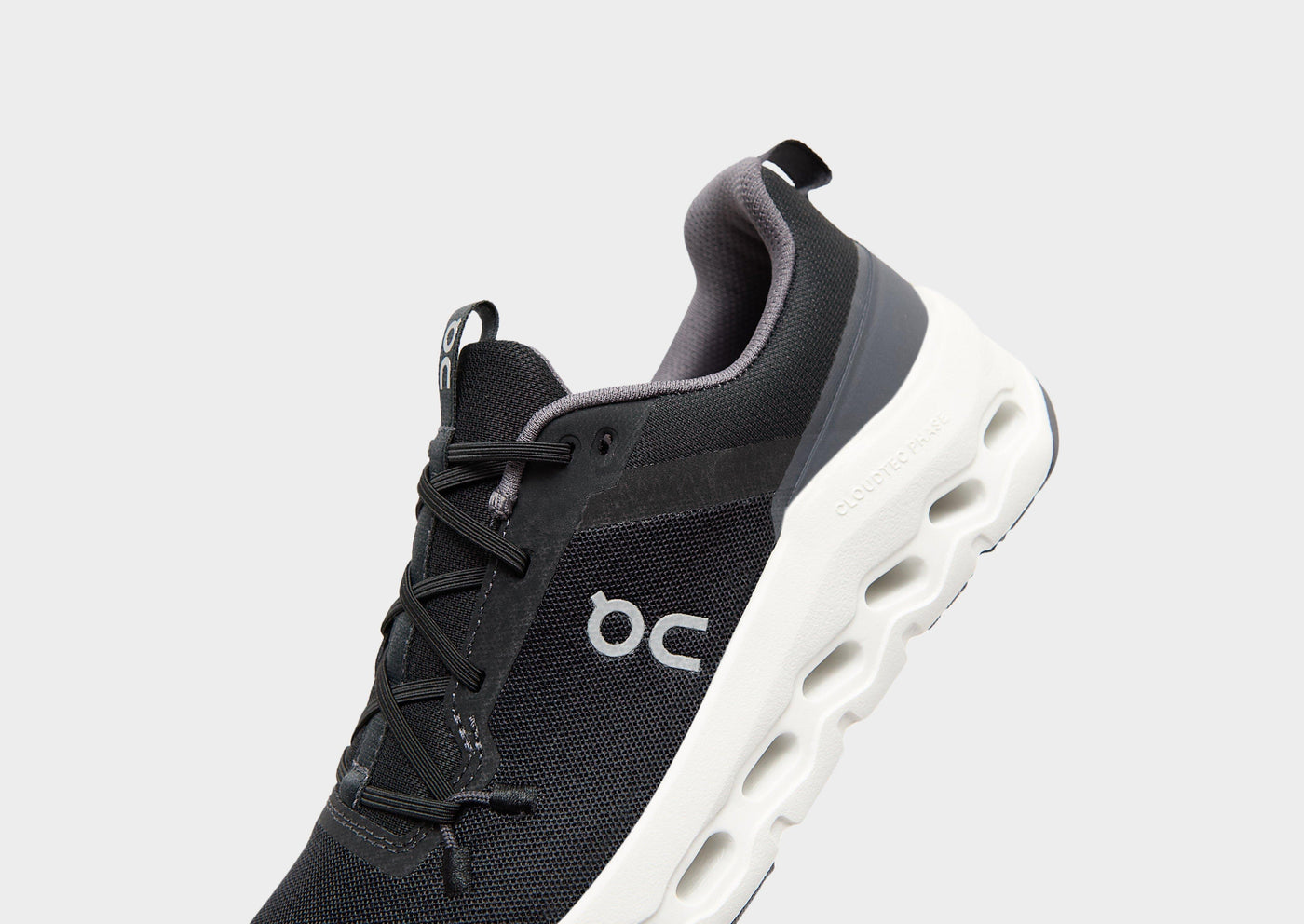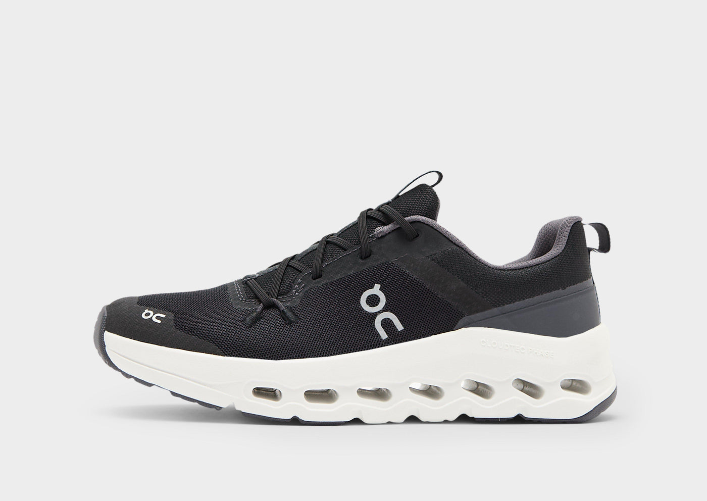 Step out in Swiss-engineered runners with these juniors' Cloudleap trainers from ON. In a Black and Whit colourway, these kicks have a lightweight, breathable mesh upper with synthetic overlays for cool comfort. They feature a lace fastening for a secure fit, a padded collar for extra support, and a heel-pull for easy on-off. Underfoot, the CloudTec Phase midsole and Helion superfoam provide a smooth ride, while the grippy rubber outsole offers total traction. Finished up with signature On Running branding throughout.