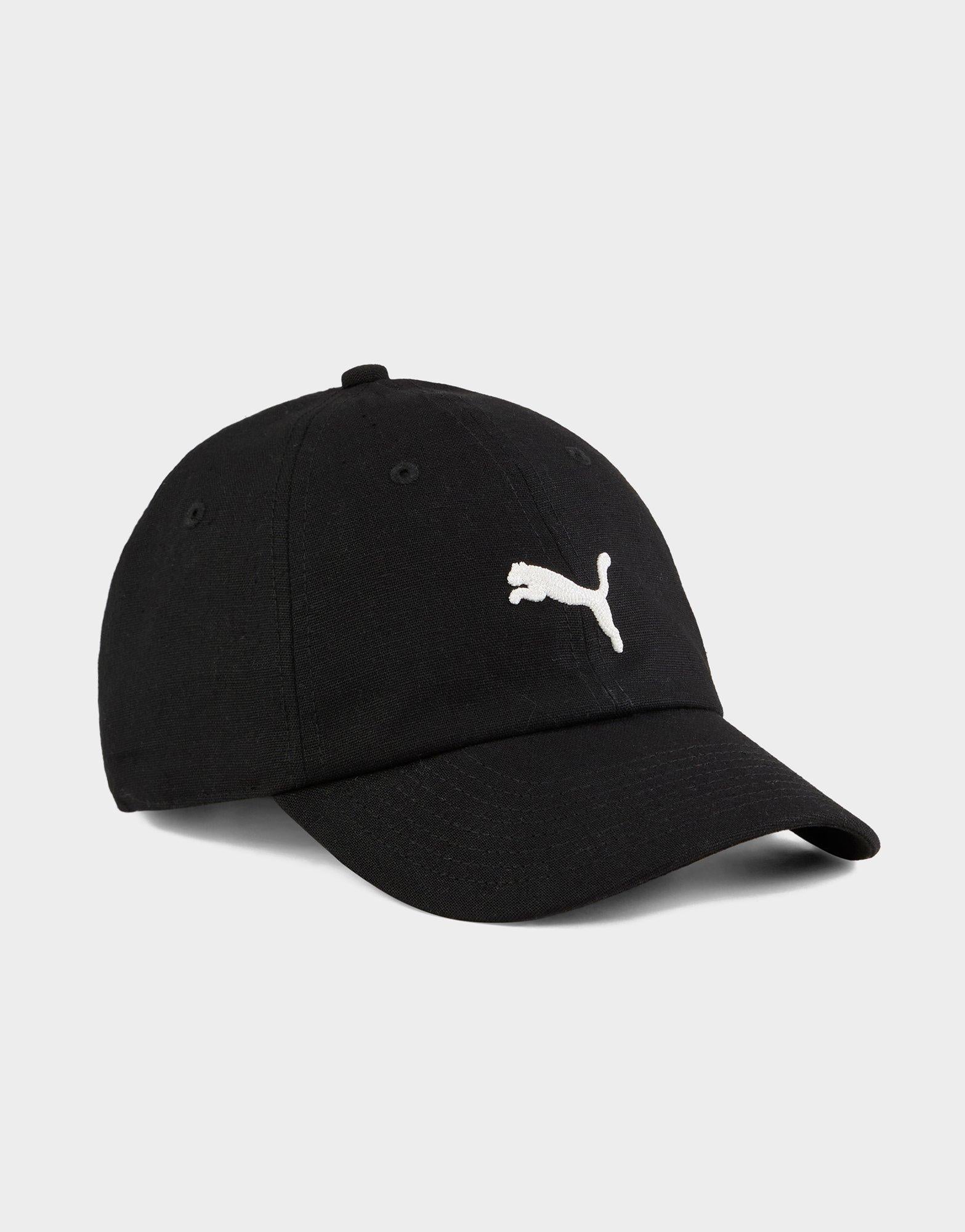 The PUMA Wardrobe ESS Dad Cap in black is the perfect mix of comfort and modern streetwear style. Featuring a relaxed, unstructured fit and a pre-curved brim, it delivers an easygoing look with everyday functionality. Crafted from a soft cotton-linen blend with breathable eyelets, this cap keeps you cool and comfortable wherever you go. The adjustable strap with a metal buckle ensures a secure, personalized fit, while the subtle metallic PUMA Cat logo adds a sleek, premium edge. A versatile essential that completes any sporty or casual outfit.