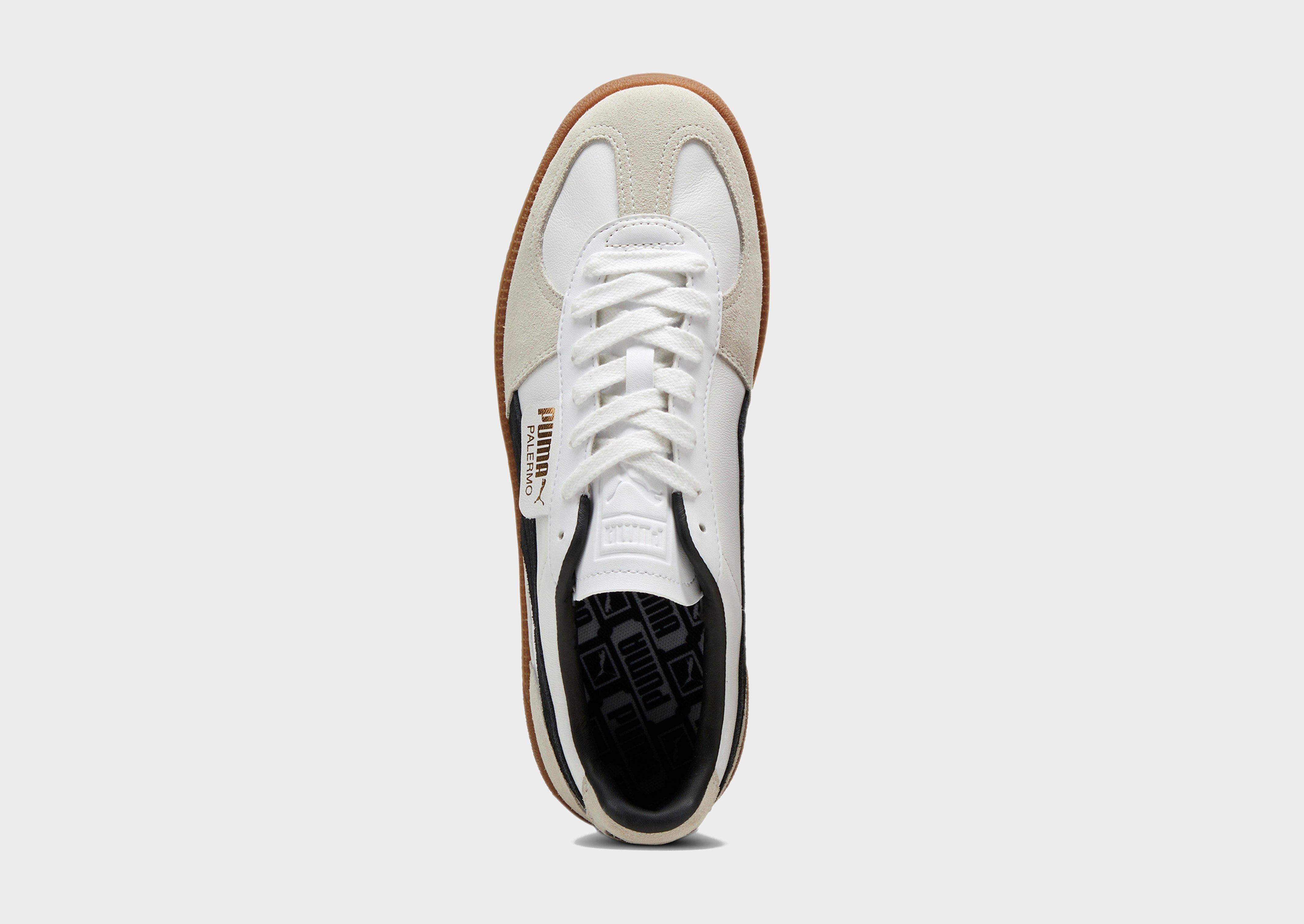 Designed with a tonal lace-up fastening and synthetic lining, they provide a comfortable fit supported by a cushioned insole for lightweight comfort. The retro-inspired gum rubber outsole ensures reliable grip, while distinctive details like the Formstrip, Palermo label on the sidewalls, and the Cat window at the heel complete the heritage look.