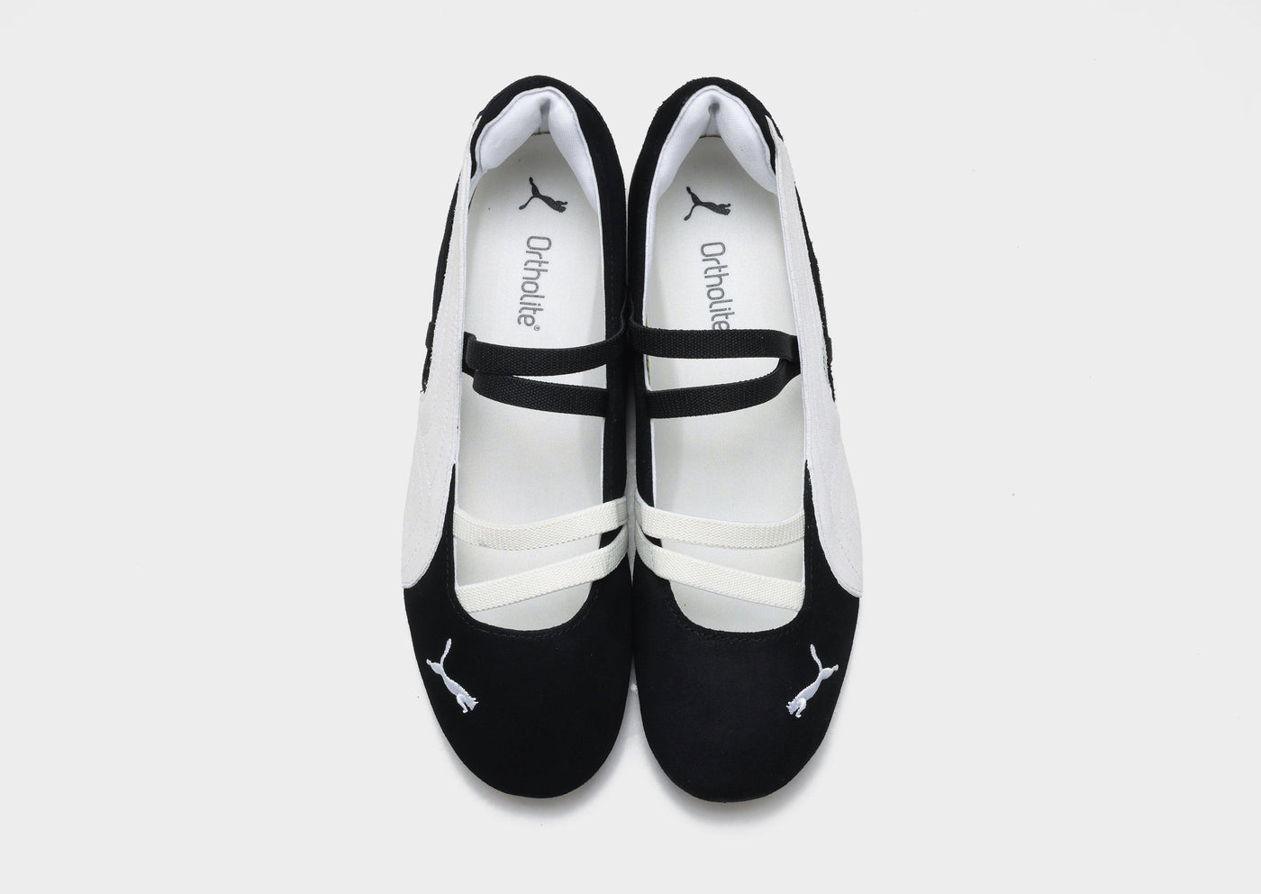 PUMA redefines a classic with the Speedcat Ballet — a bold twist on the iconic Puma Speedcat Ballet, now reimagined through the lens of effortless, feminine style. Crafted from premium suede, this sleek silhouette brings motorsport edge to a timeless ballerina shape. Featuring a contrast Formstrip, embroidered PUMA Cat logo, and elastic crossover bands for a snug, secure fit — the Speedcat Ballet is built for comfort, confidence, and all-day wear. Whether you're heading out or dressing down, this is heritage style made modern.
