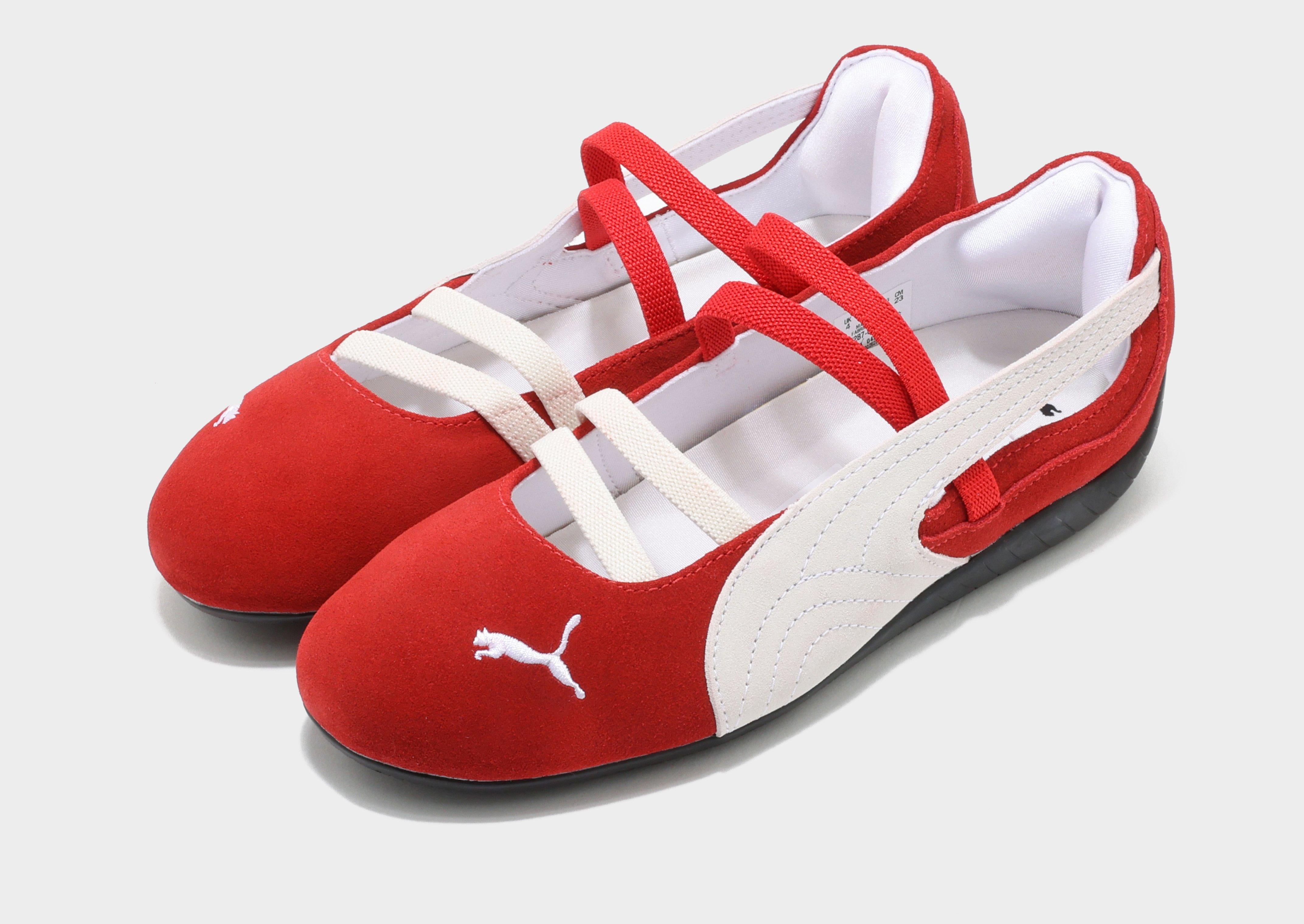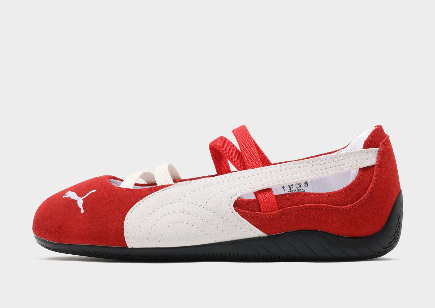 PUMA redefines a classic with the Speedcat Ballet — a bold twist on the iconic Puma Speedcat Ballet, now reimagined through the lens of effortless, feminine style. Crafted from premium suede, this sleek silhouette brings motorsport edge to a timeless ballerina shape. Featuring a contrast Formstrip, embroidered PUMA Cat logo, and elastic crossover bands for a snug, secure fit — the Speedcat Ballet is built for comfort, confidence, and all-day wear. Whether you're heading out or dressing down, this is heritage style made modern.