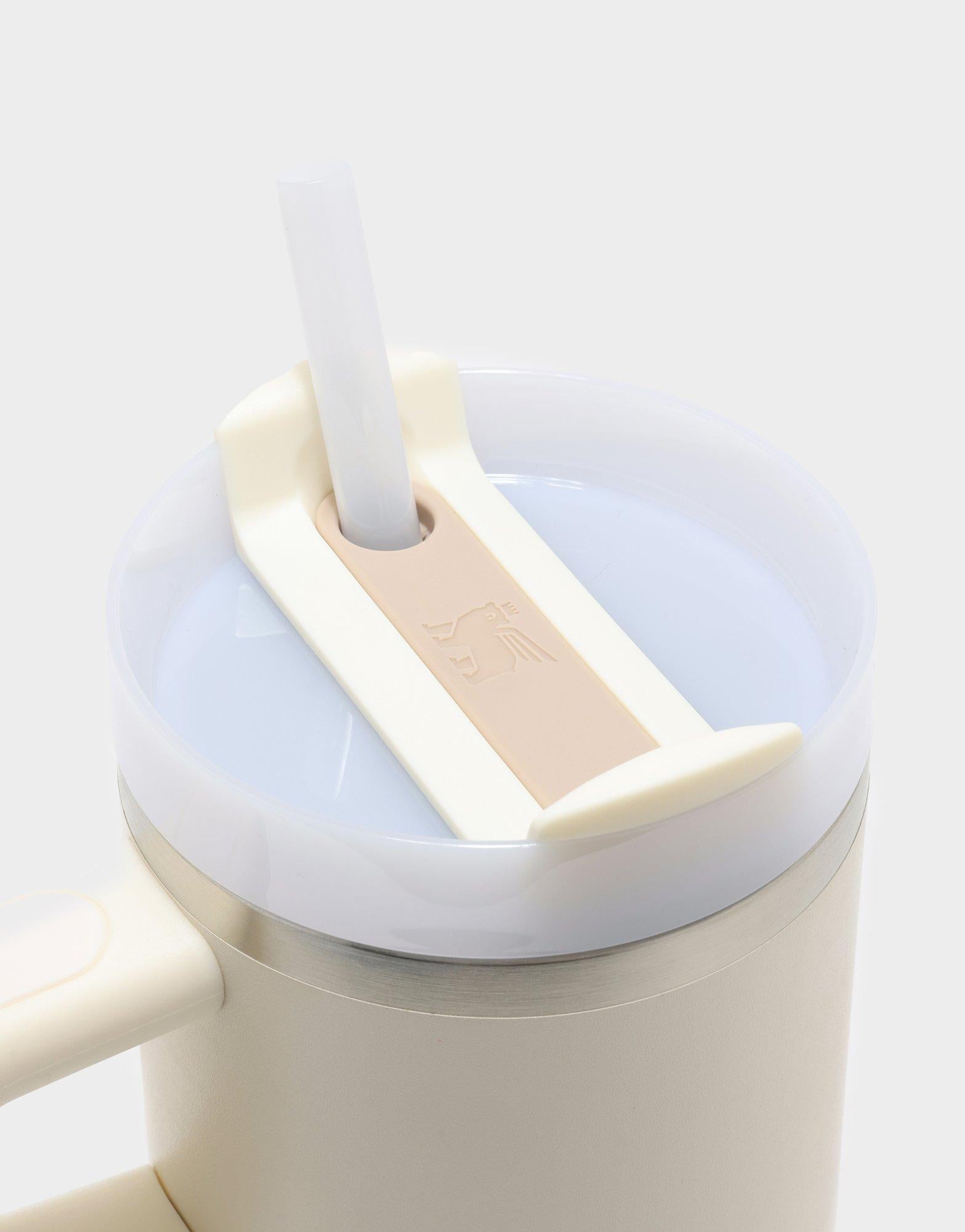 Keep hydrated with The Quencher water bottle in a Cream colourway, featuring Stanley's reliable double-wall vacuum insulation to maintain temperatures (cold for 11 hours, hot for 7, icy for 2 days). This 20oz stainless steel bottle includes a rotating 3-position lid (straw opening, drink opening, and full cover), a sturdy handle, and a base designed to fit most car cup holders.
