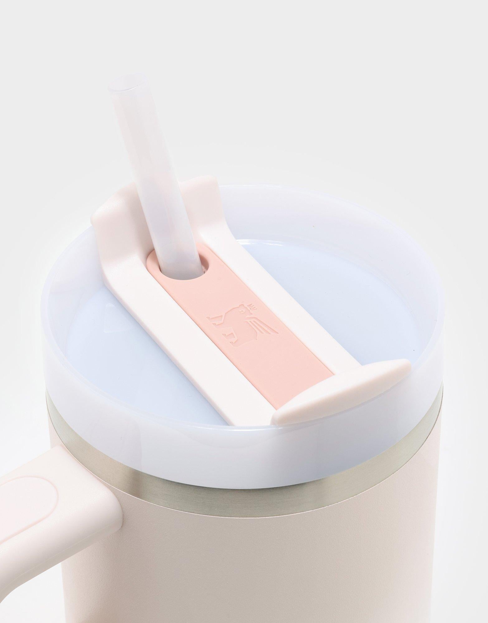 This 20oz Stanley Quencher is presented in a Pink colourway, utilizing double-wall vacuum insulation to keep your drinks cold for 11 hours, hot for 7, and iced for up to 2 days. The durable stainless steel tumbler features a convenient handle, a car-cup-holder-friendly base, and a rotating cover that allows for a straw, an open sip, or a full-cover top.