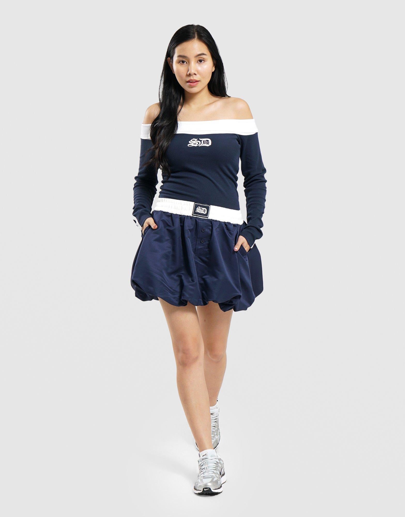 Show off your feminine side with an edgy twist in the Supply & Demand Puff Skirt in Navy. The puffed design creates a chic, unique silhouette that pairs perfectly with crop tops or tees. Crafted from comfortable fabric for all-day wear, it’s ideal for hangouts or casual outings.